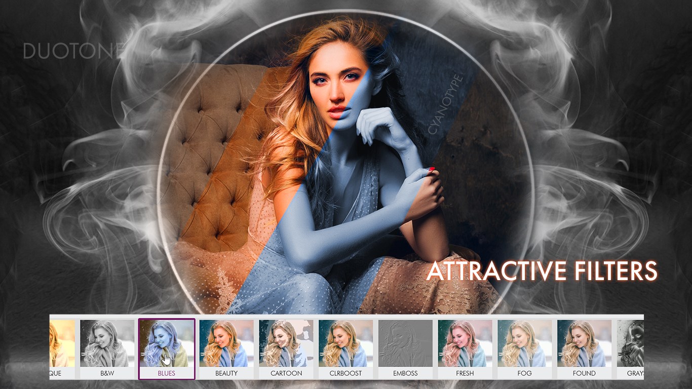 Smoky Text Photo Frames includes smoky frames of all the letters from A-Z... It allows you to set your photo within the frame in perfect place and also apply effects on it.