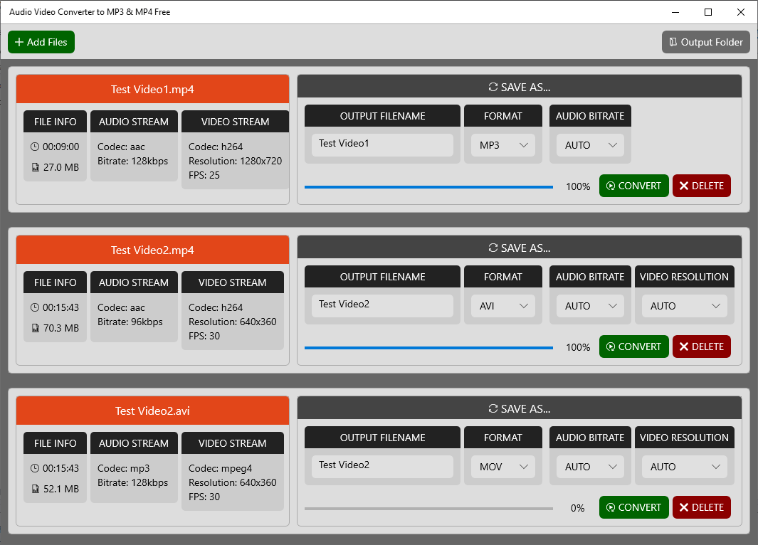Audio Video Converter to MP3 & MP4 is ultimate video converter software, which can convert homemade DVD and video files including 4K videos to all popular videos and audio such as MP3, M4A, WAV, WMA, AAC, OGG, MP4, MOV, MKV, AVI, WMV, MPEG, WEBM, FLV, along with HD videos. With our Free Video Converter you can convert Video and Audio files from ayn source, from YouTube, Vimeo or another video online library. In few clicks you will convert video or sound to your favourites formats. Our converter including all codec audio and video, including AAC, AC3, libmp3lame, libx265 and more! You will able to convert audio up to 320kbps bitrate, and convert video up to 4K resolution.