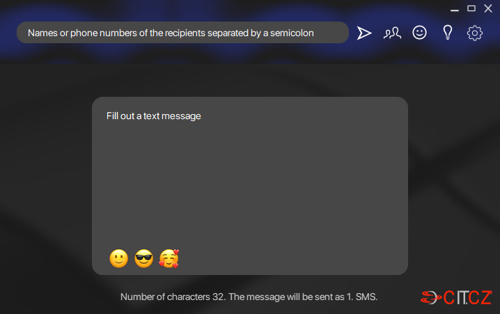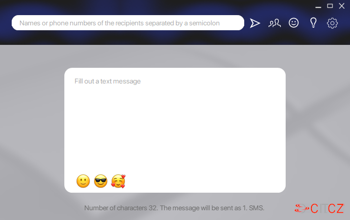 Once the connection is established, start typing the names of your contacts in the address field, the client will automatically suggest them according to your contacts stored on your phone. Write the message and press the send button. Then just confirm the sending on your phone.