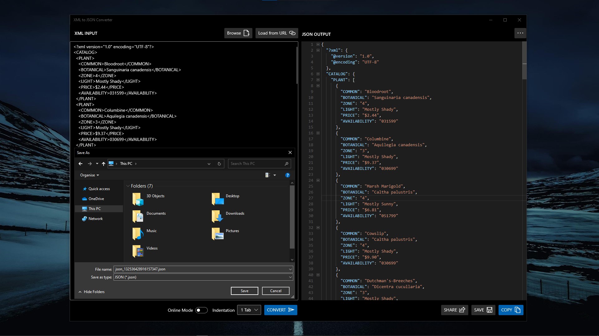 XML to JSON Converter is a windows UWP app for XML to JSON Conversion.