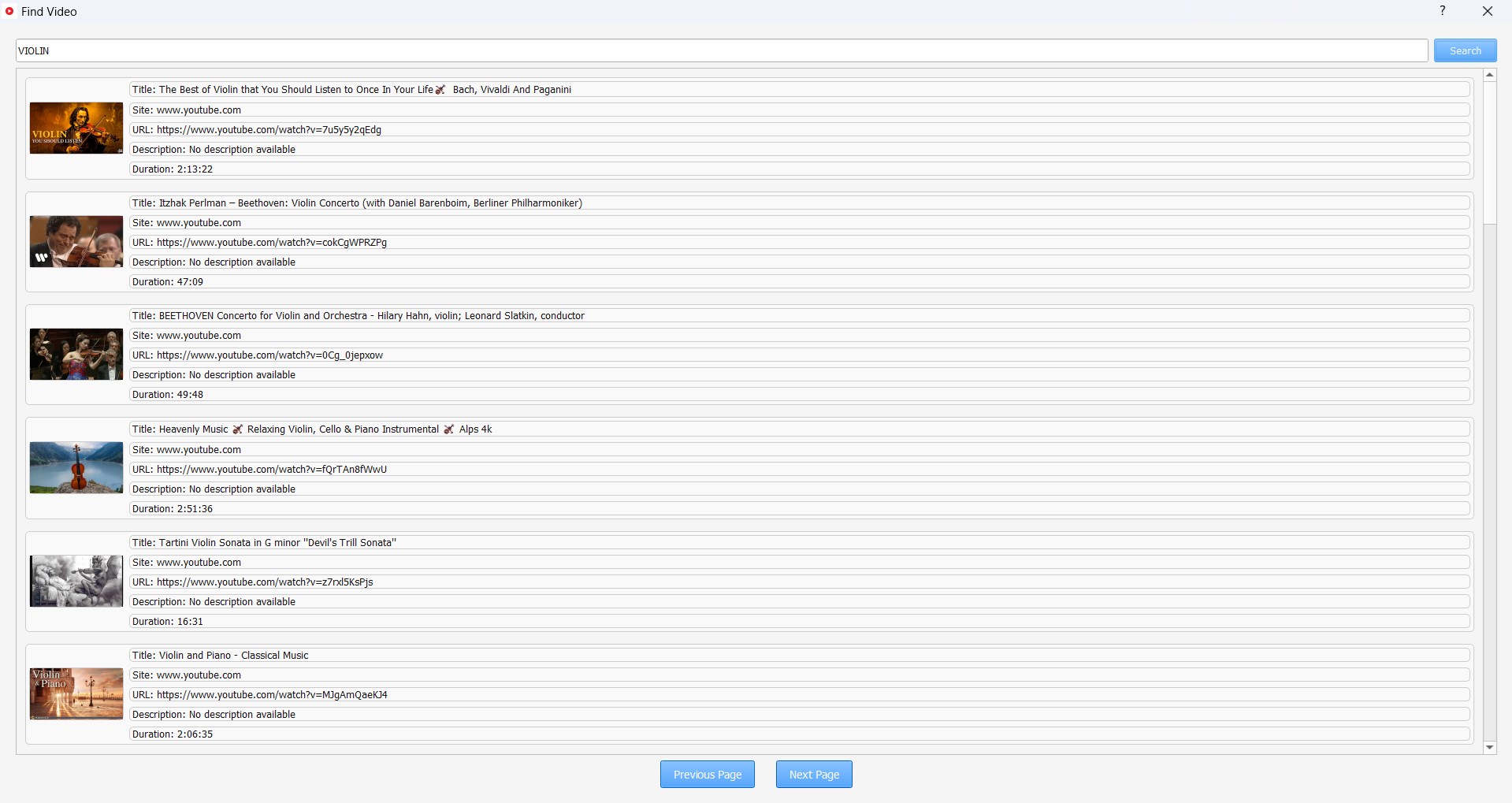 Search videos in YouTube and download