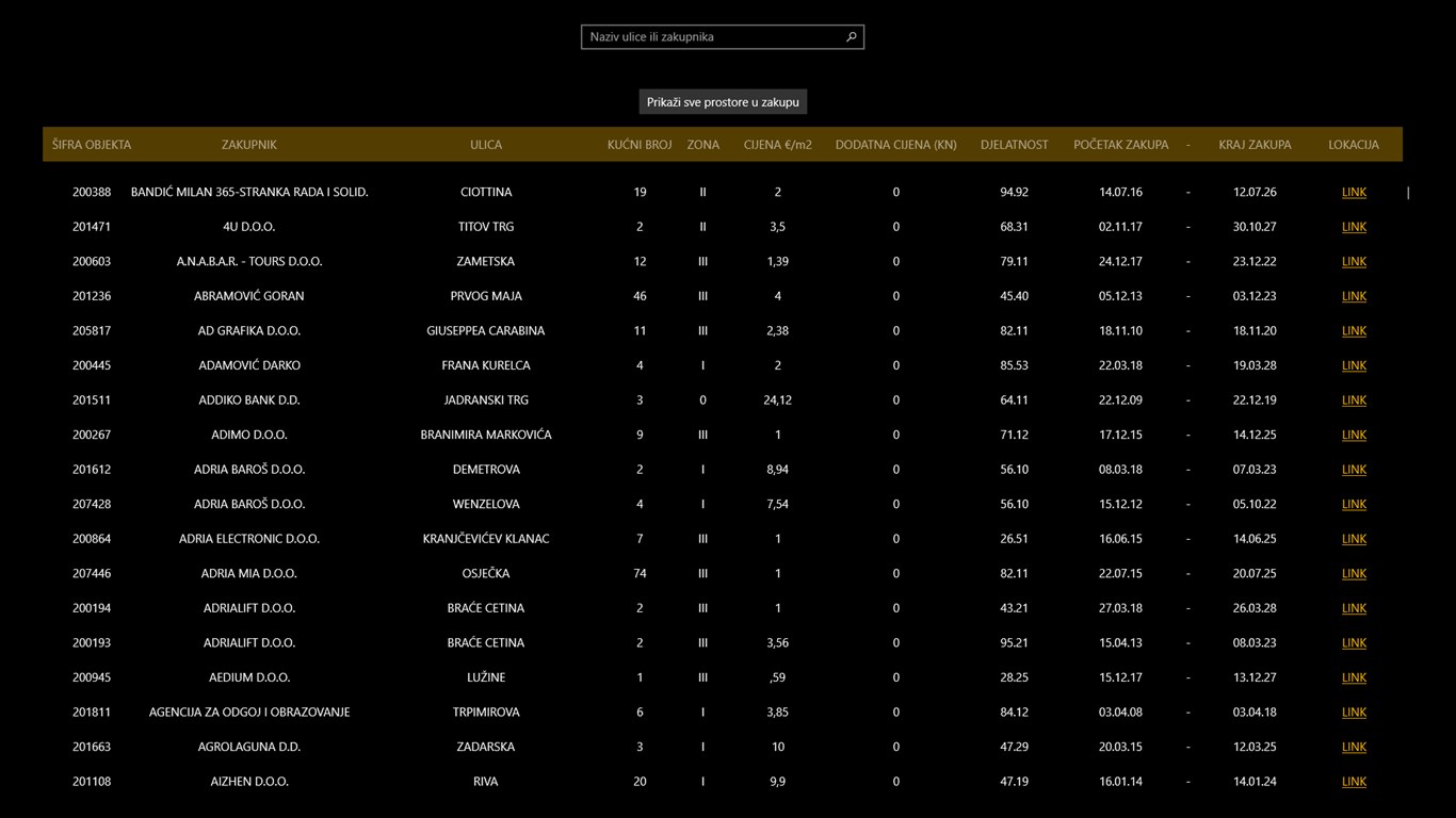 Grad Rijeka - pregled svih poslovnih prostora, slobodnih ili u zakupu.