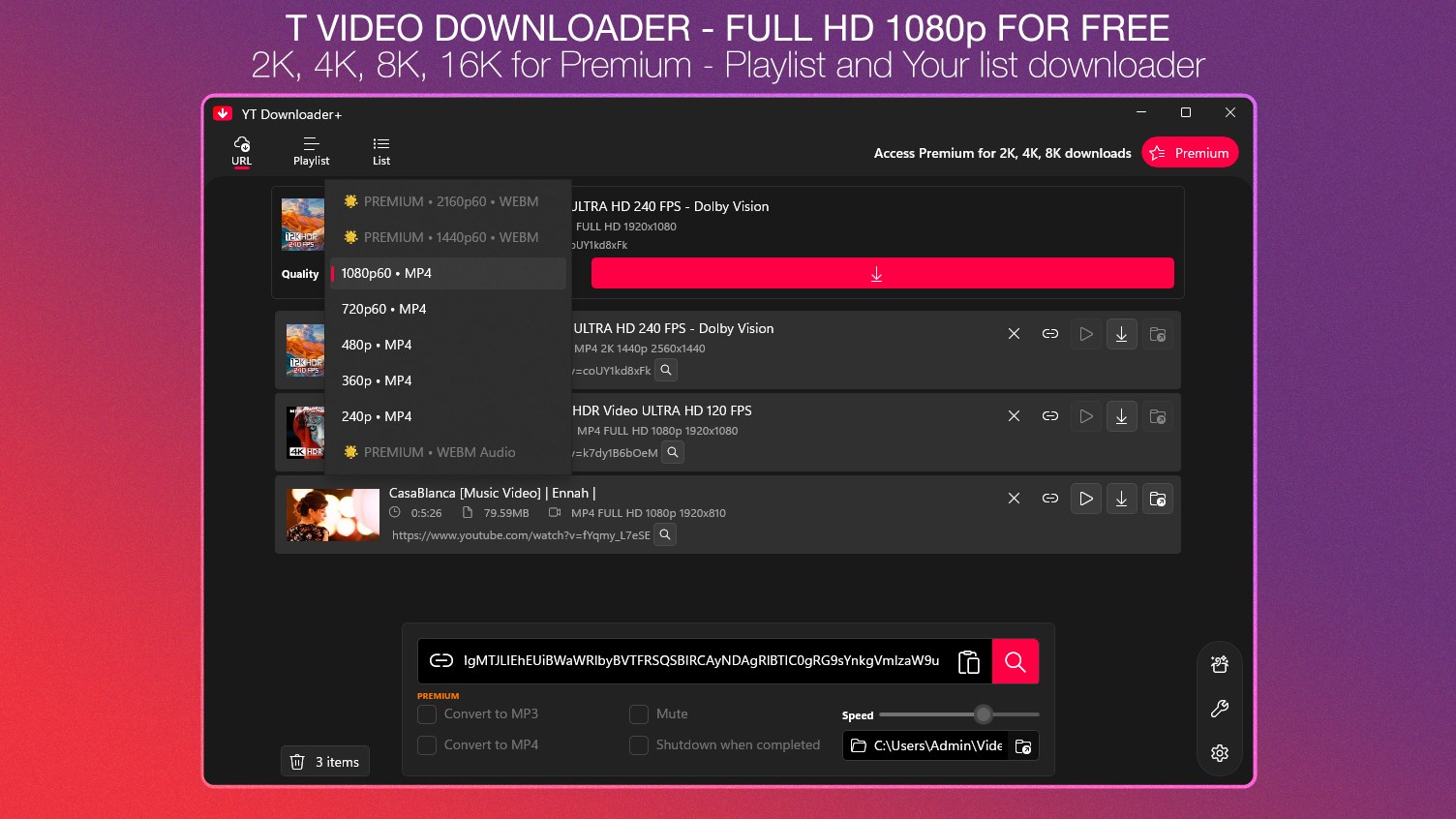 Download YT Full HD video.Download YT music.Download 2K, 4K YT video.Download custom video LIST.Download video PLAYLIST.