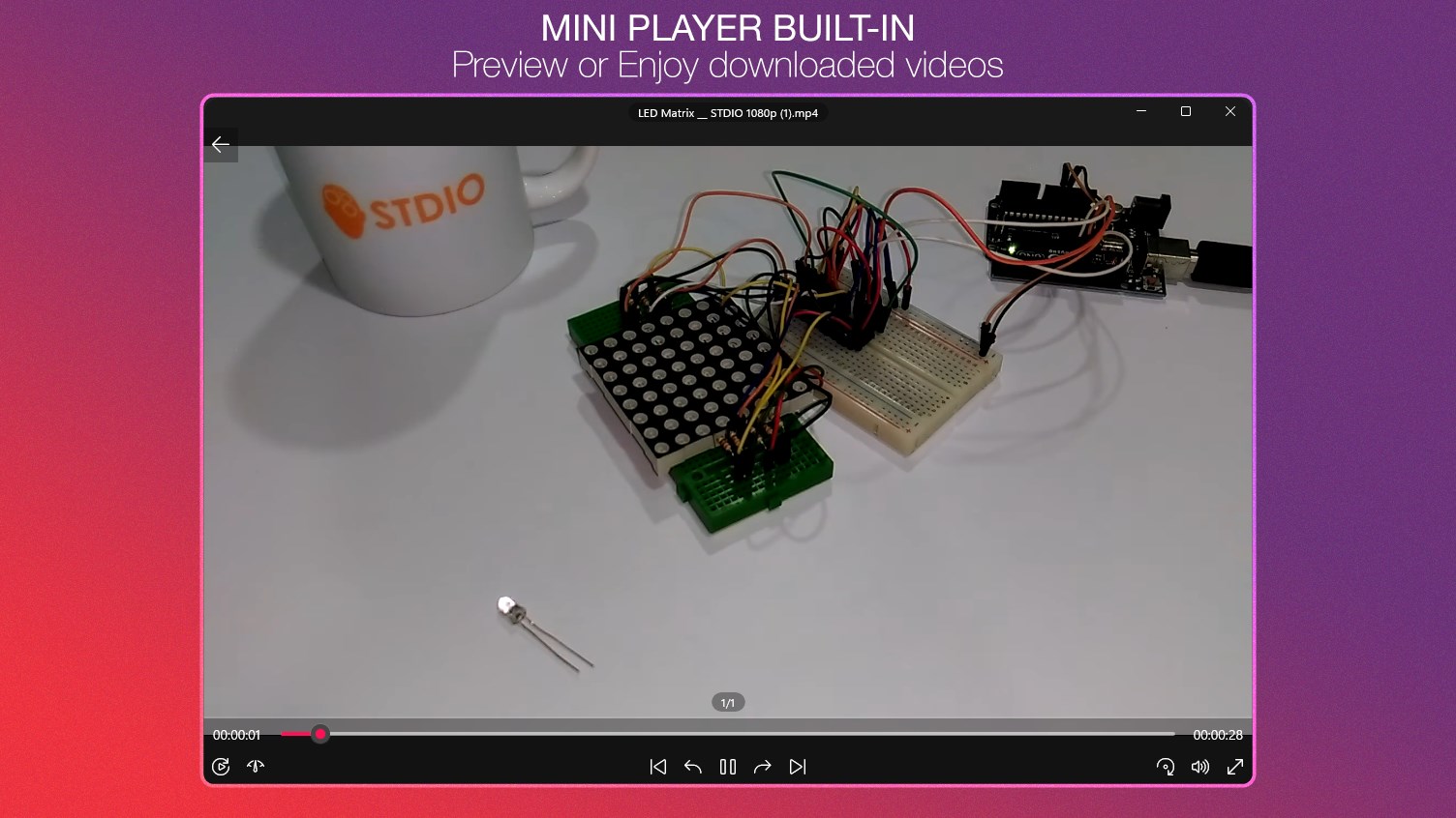 • Mini player to play your video directly.