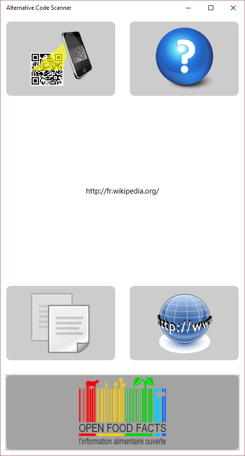 If the code is a food barcode, the application can open the OpenFoodFacts site on the corresponding product card.