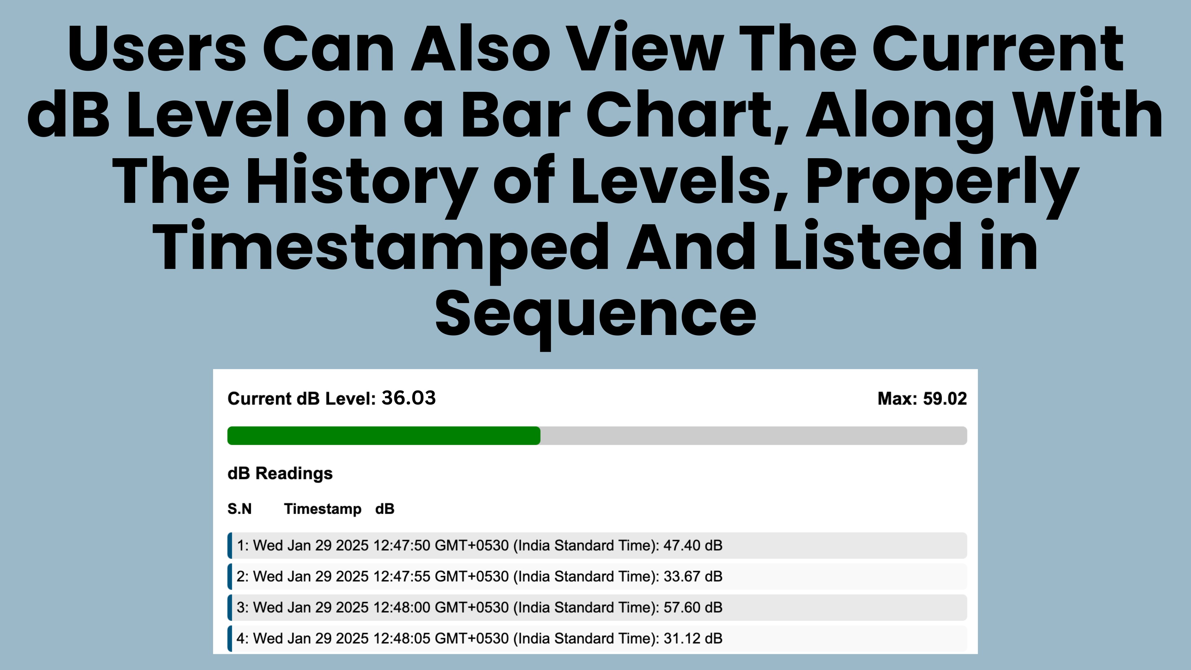 Track the current dB and maximum dB level in real-time.