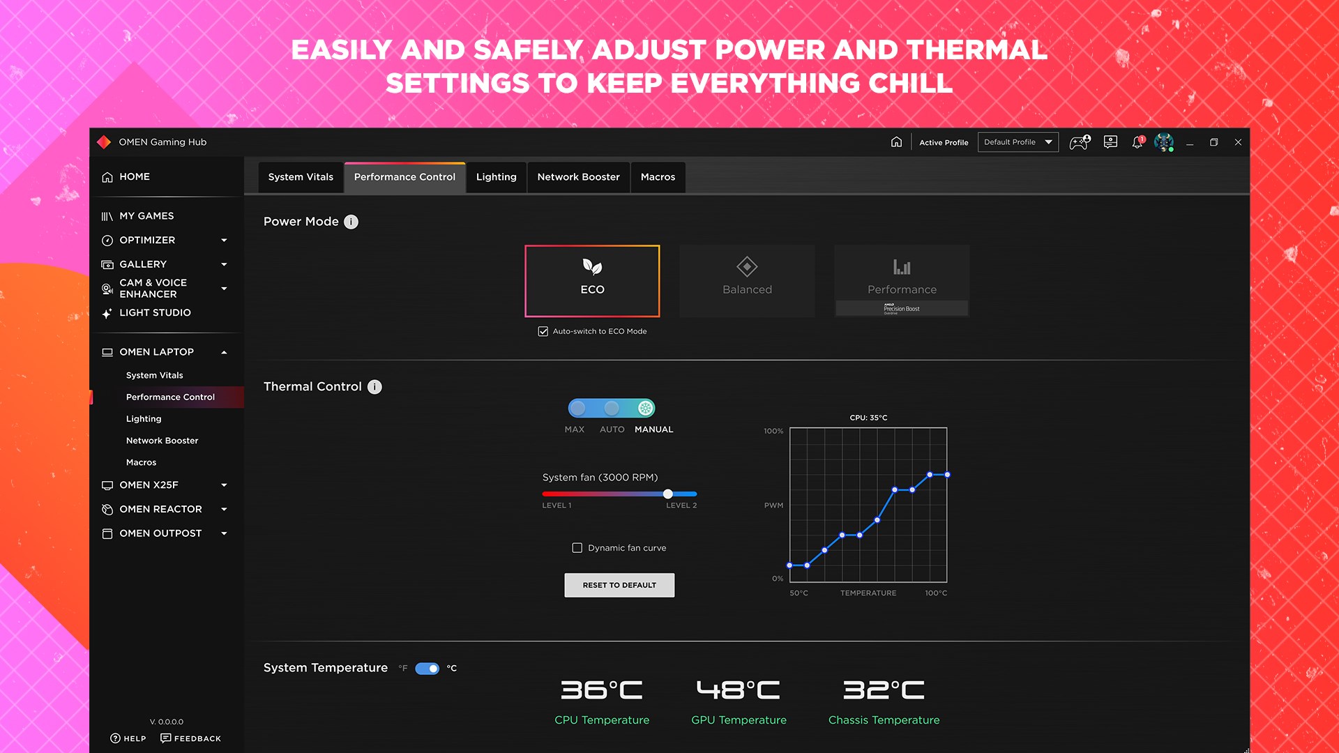 • Performance Control: Adjust power and thermal settings to match the style of your gameplay