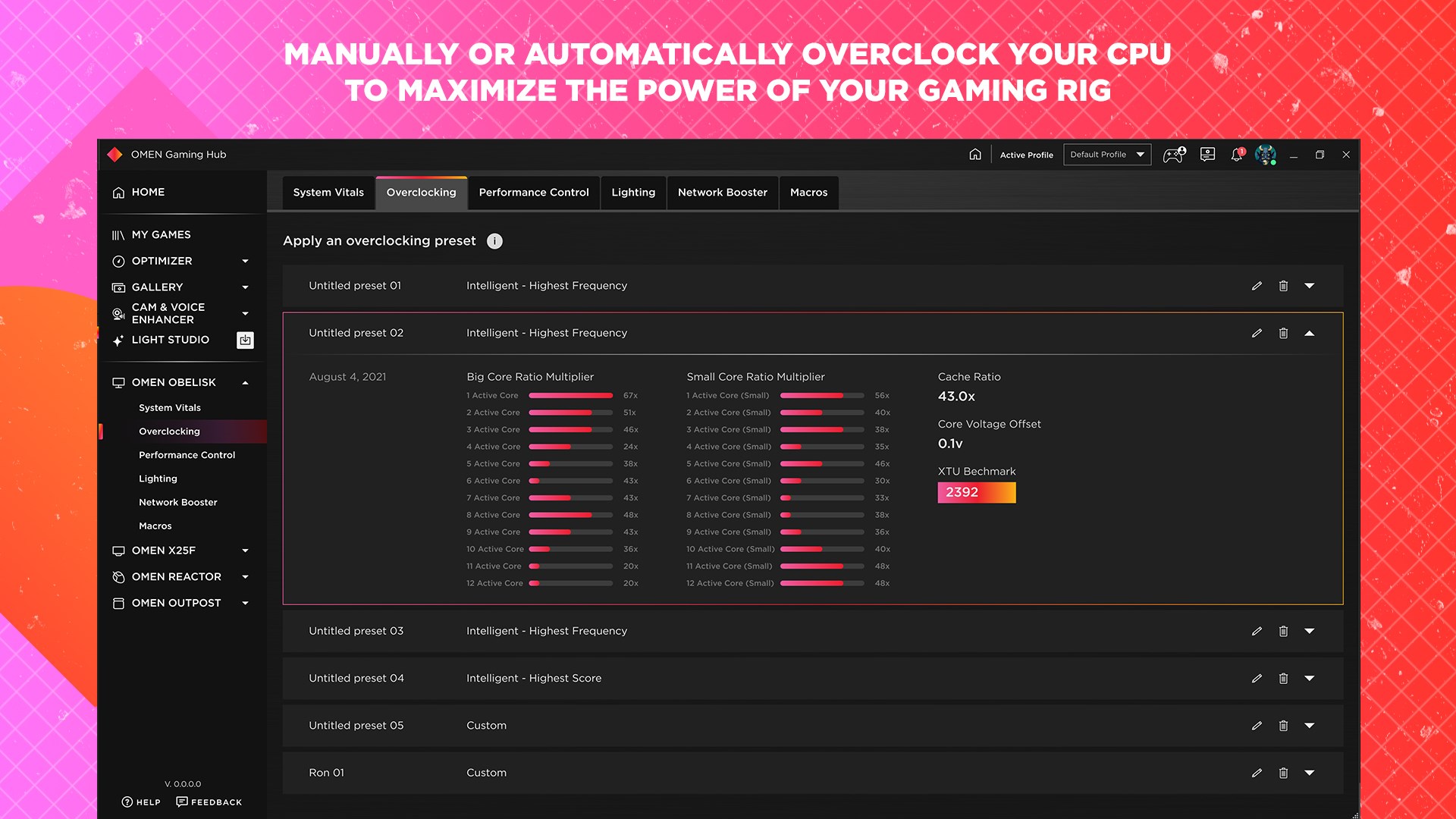 • Overclocking: Reach epic performance by modifying CPU settings (Select OMEN PCs only)