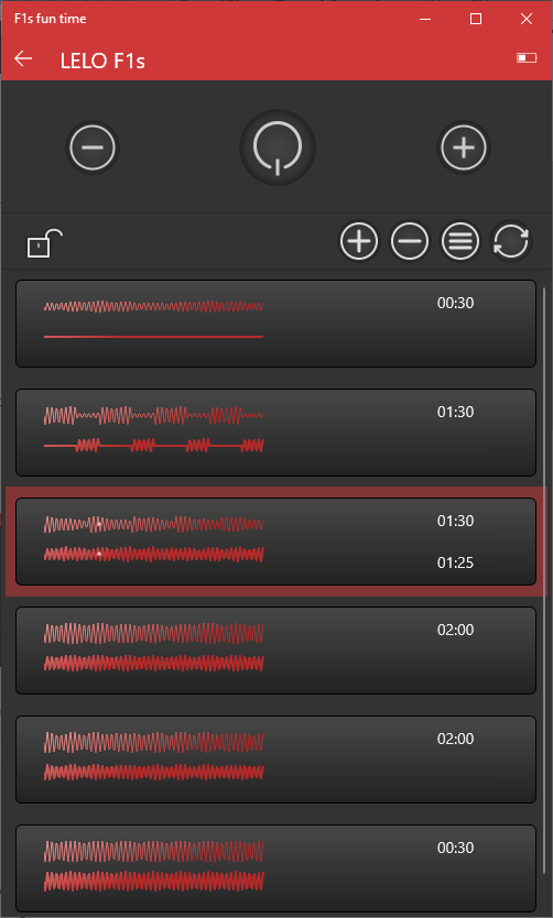This app connects your LELO F1s via Bluetooth. You can use F1s buttons to run the special vibration. You also can set the different duration time and make your device run on the plan. Wish you to have a fun time with LELO F1s.