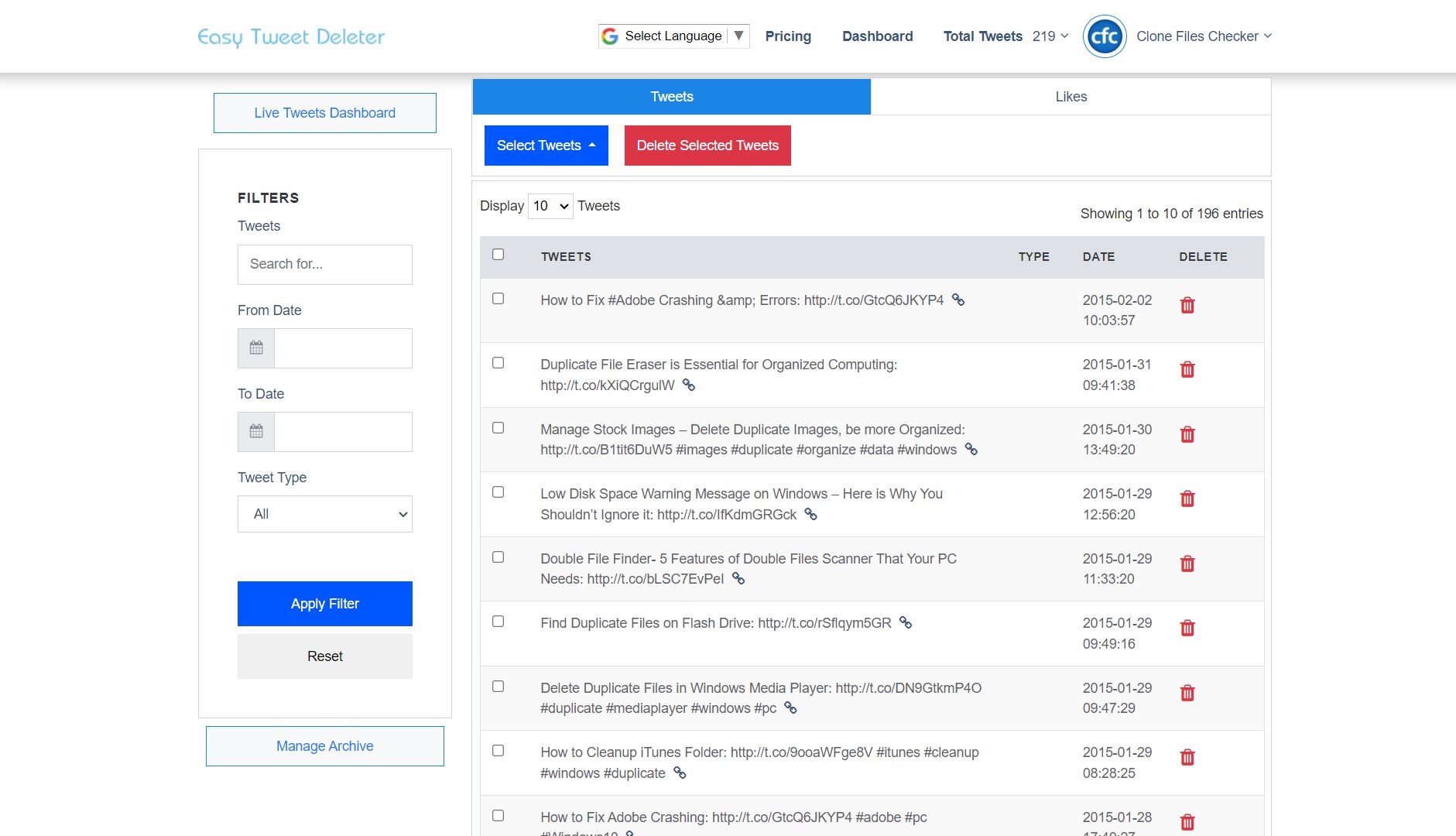 Tweet Deleter Tweet Likes Deleter Twitter Archive Eraser