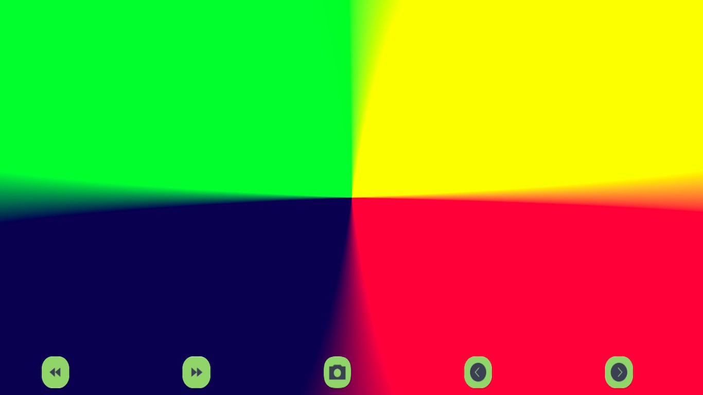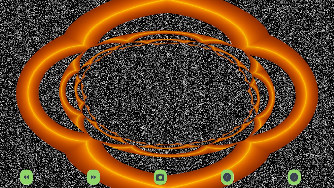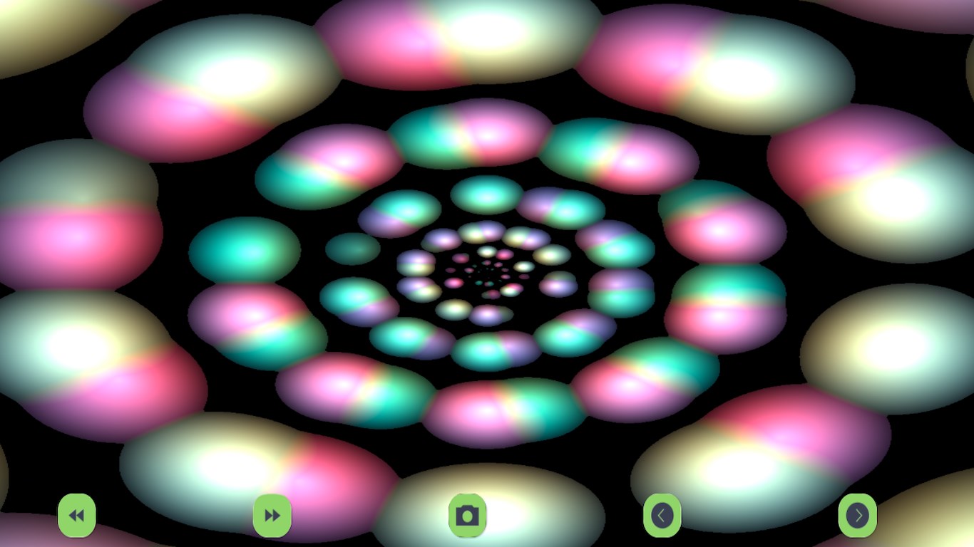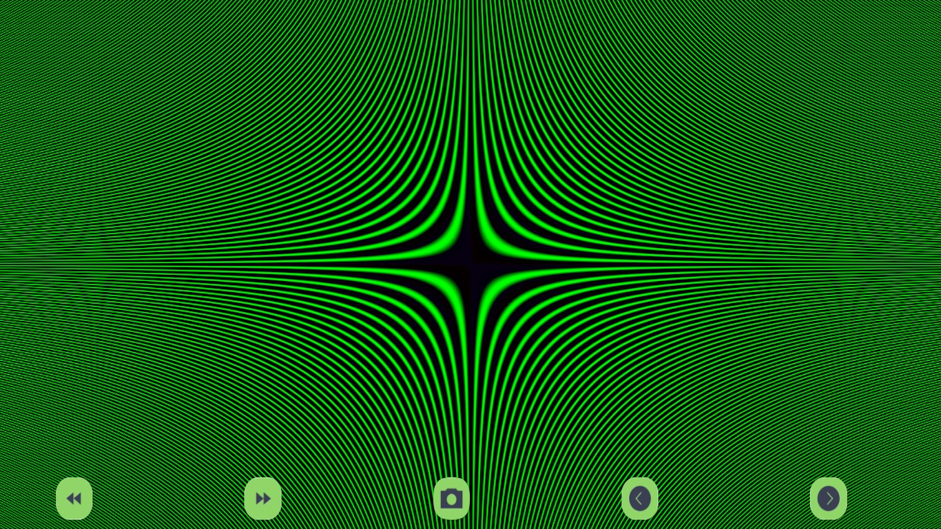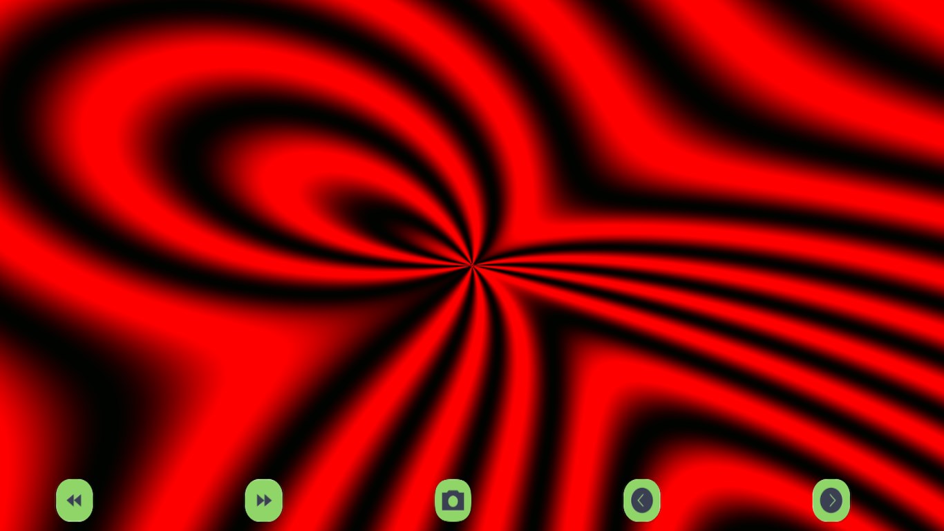 There are 21 different visual effects in CineVox, including mirrors, spirals, bubbles, kaleidoscope and more. The effects change colour and shape with volume, so the louder the sound, the more the effect changes. Sounding fricatives (hisses, shhh etc) will change the display with additional effects. In some modes it gives a snowstorm effect, in others it makes your camera image black and white and in the hall of mirrors mode it further distorts your camera image.
