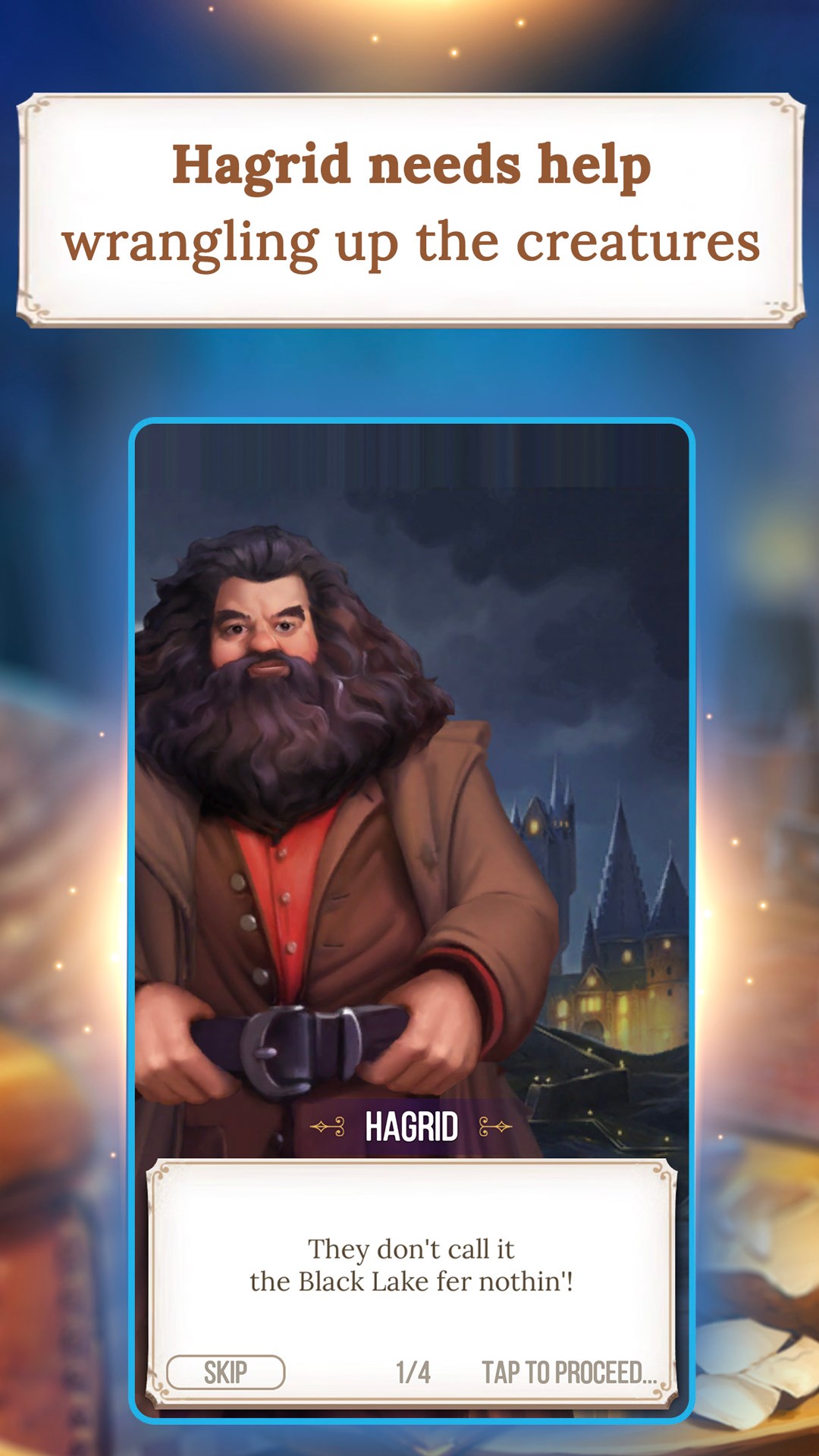 As you progress in your Match-3 adventure, unlock classic moments from the films, including Harry, Ron and Hermione toppling trolls, Fred & George playing pranks, and Hagrid taking care of his magical creatures at Hogwarts! Learn more about the wonders of the Wizarding World and Hogwarts as you collect magical creatures that will aid your Match-3 puzzle solving! So get ready to ‘swish and flick’ your way to a magical journey of your very own in a whimsical Match-3 game!