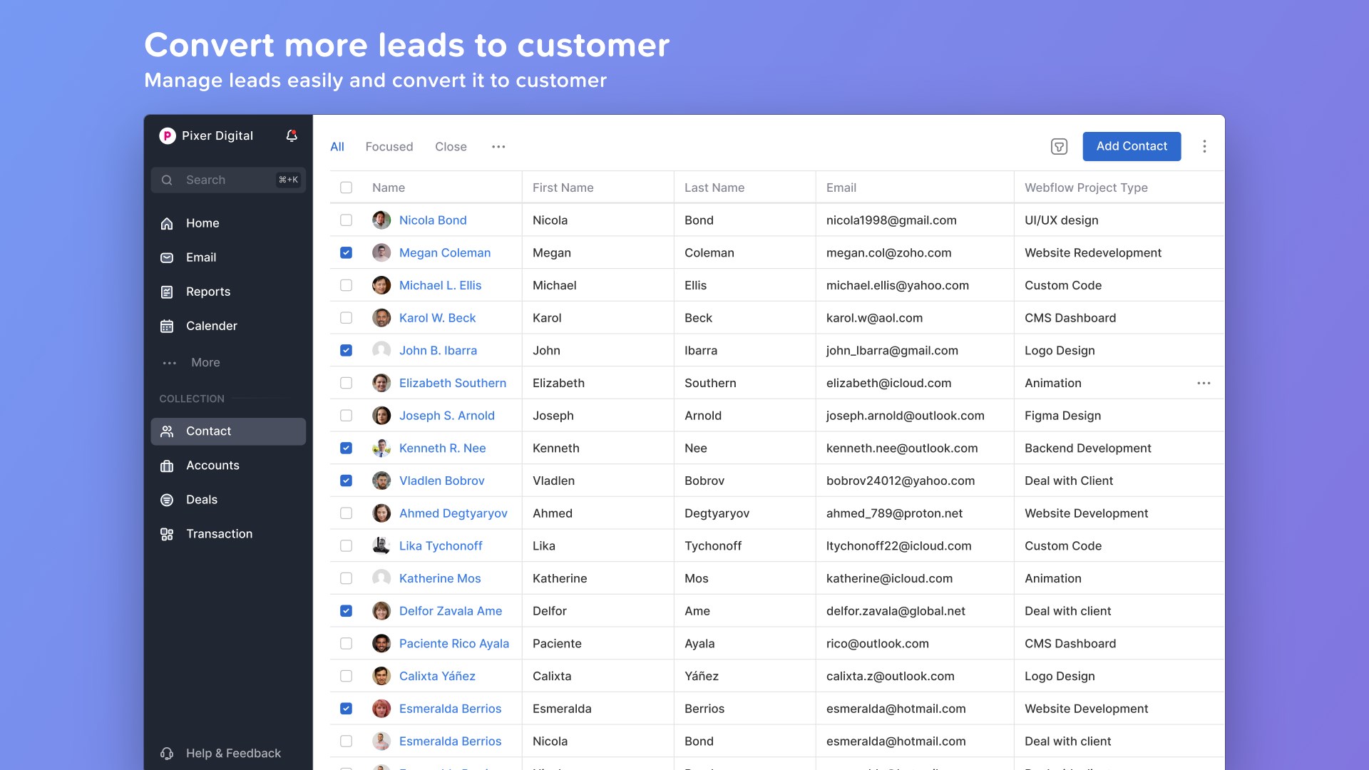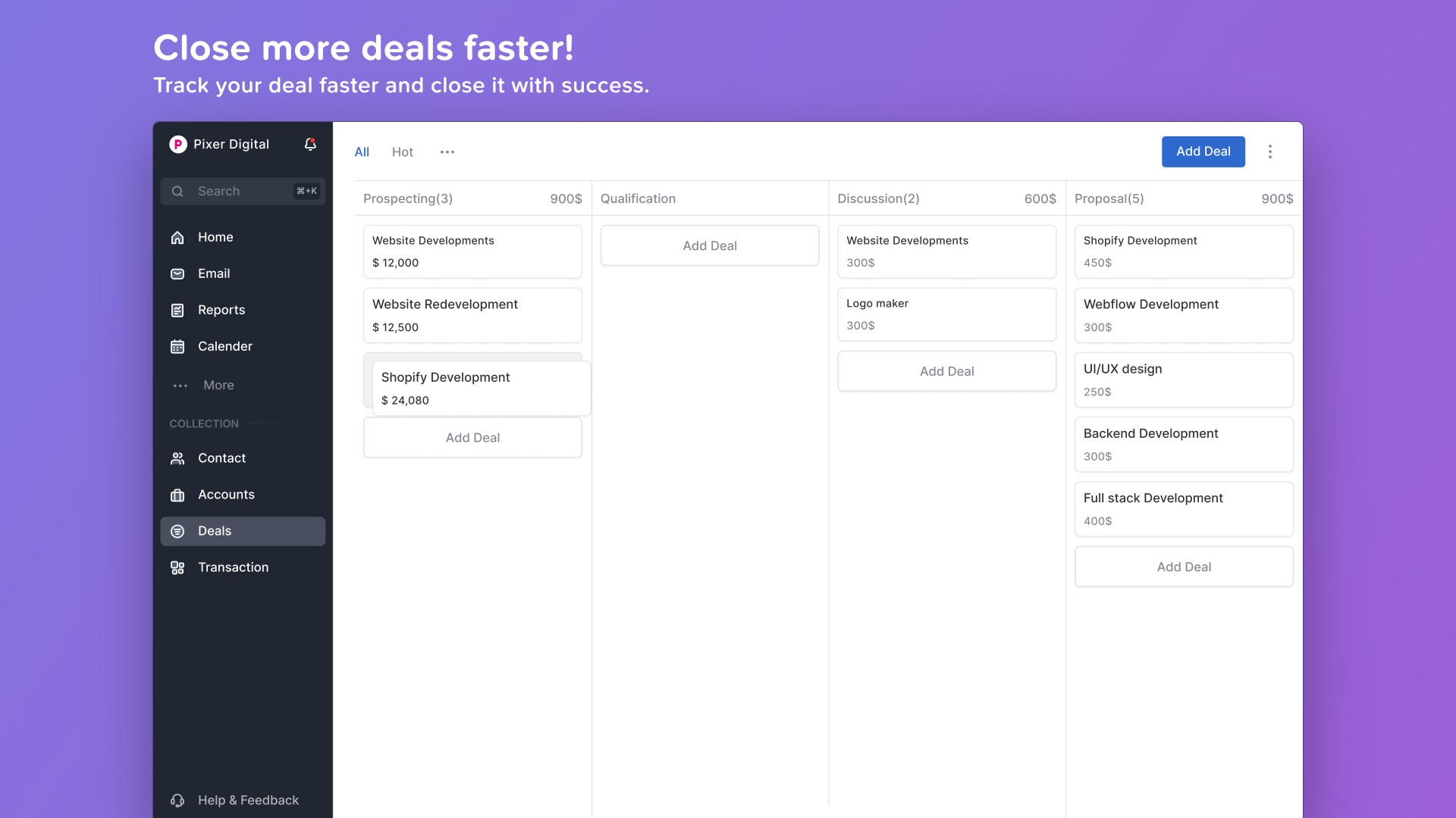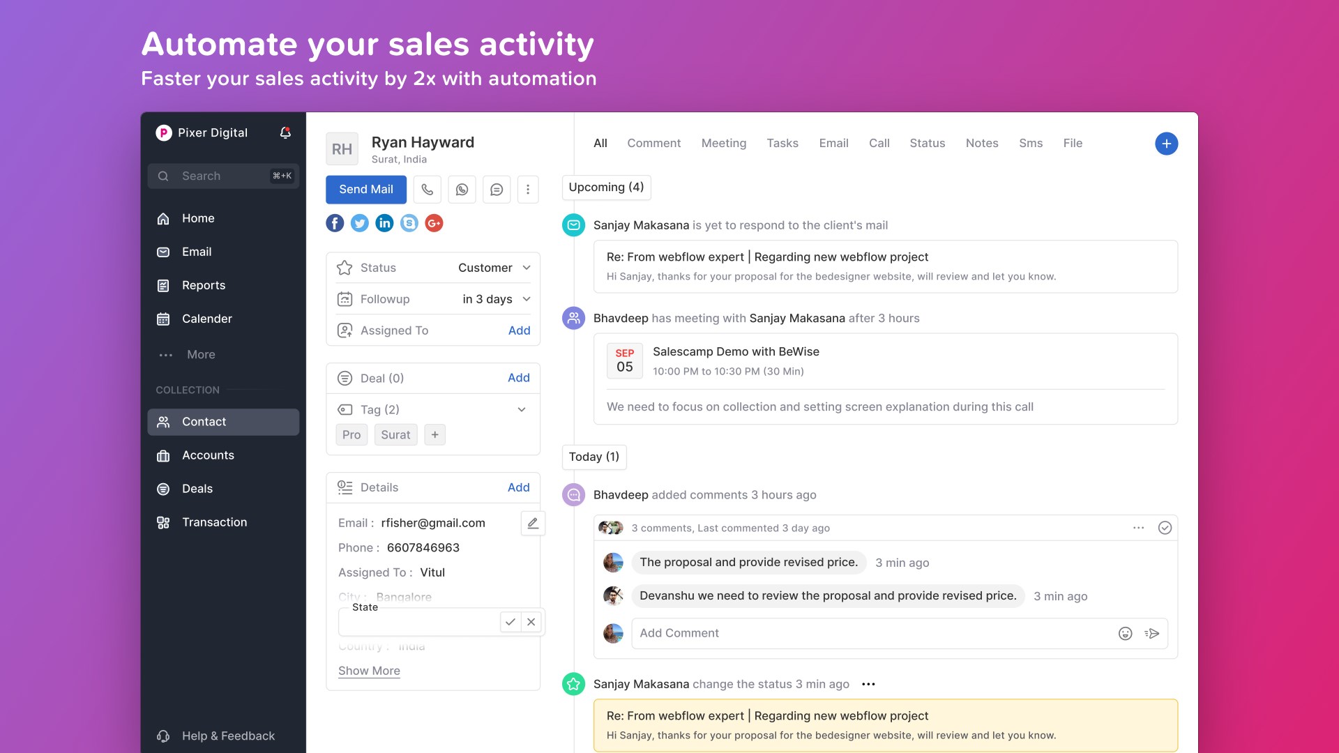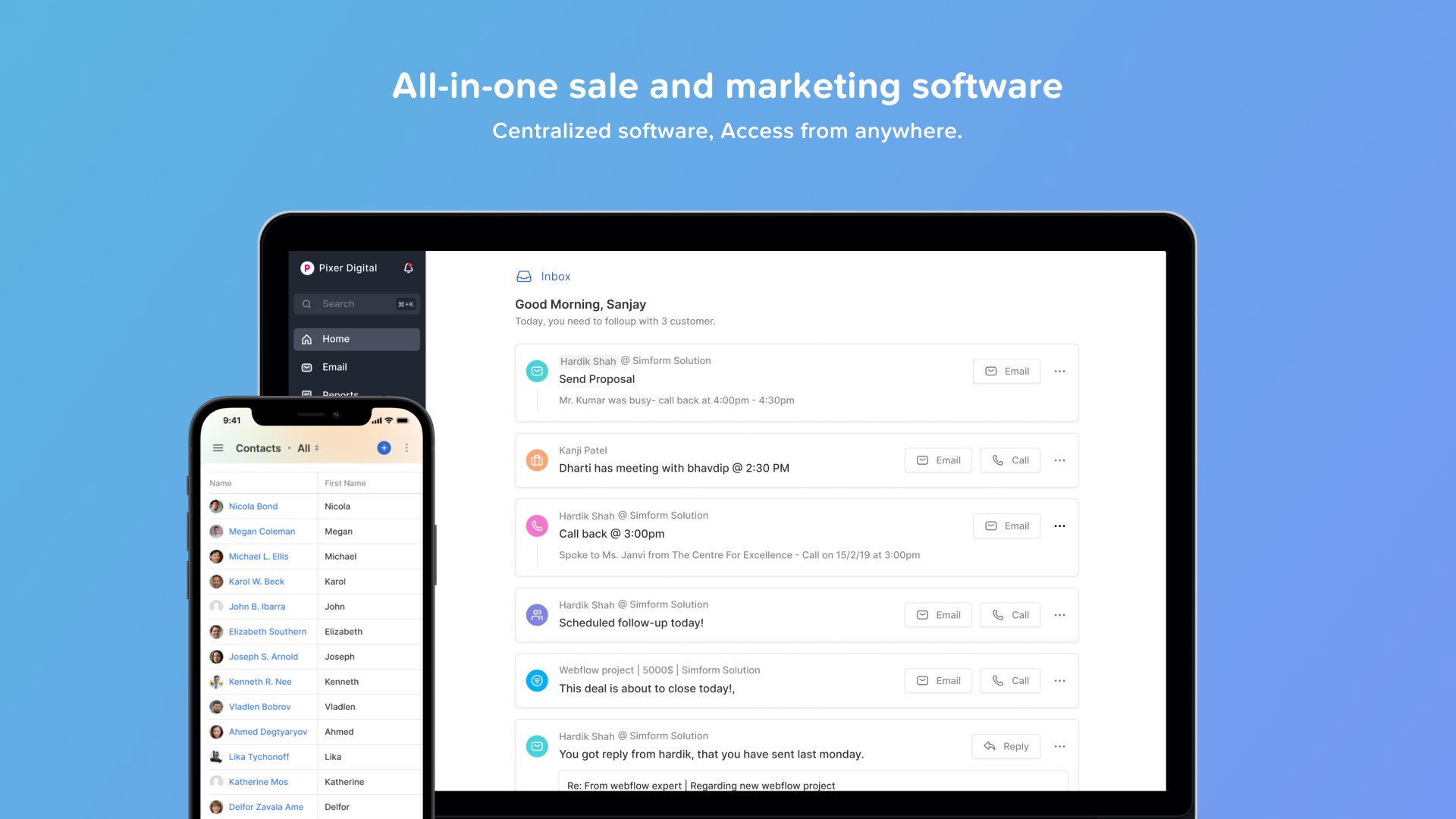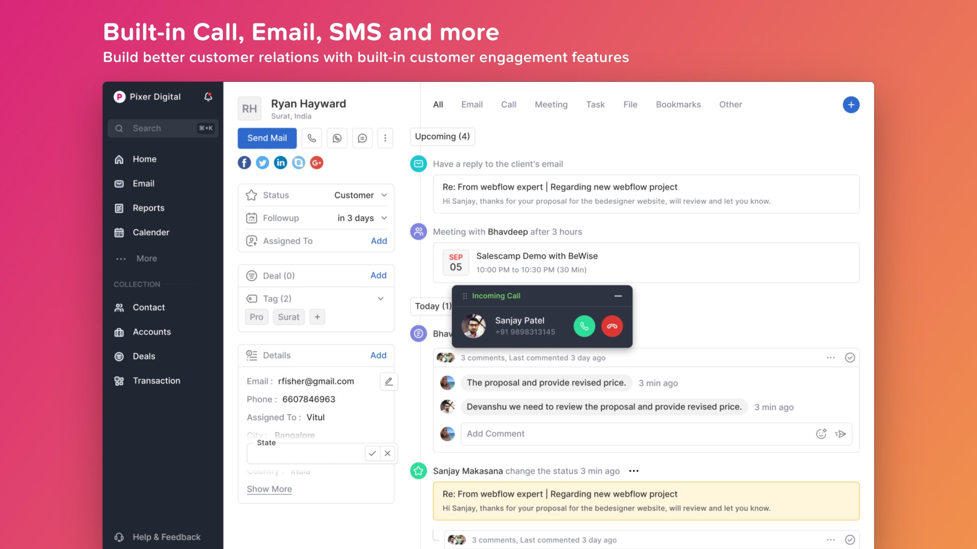 Lead ManagementSales ReportingCall & SMSEmail SyncEasy Customization Deal PipelineActivities & GoalsIntegrationCRMContact Management SalesMarketingInboundOutboundSaas