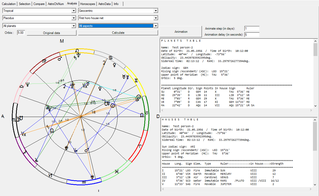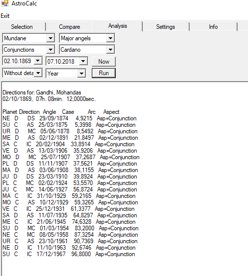 - Calculates primary astrological directions (mundane, zodiacal), against house angels, planets, parallels, etc...)