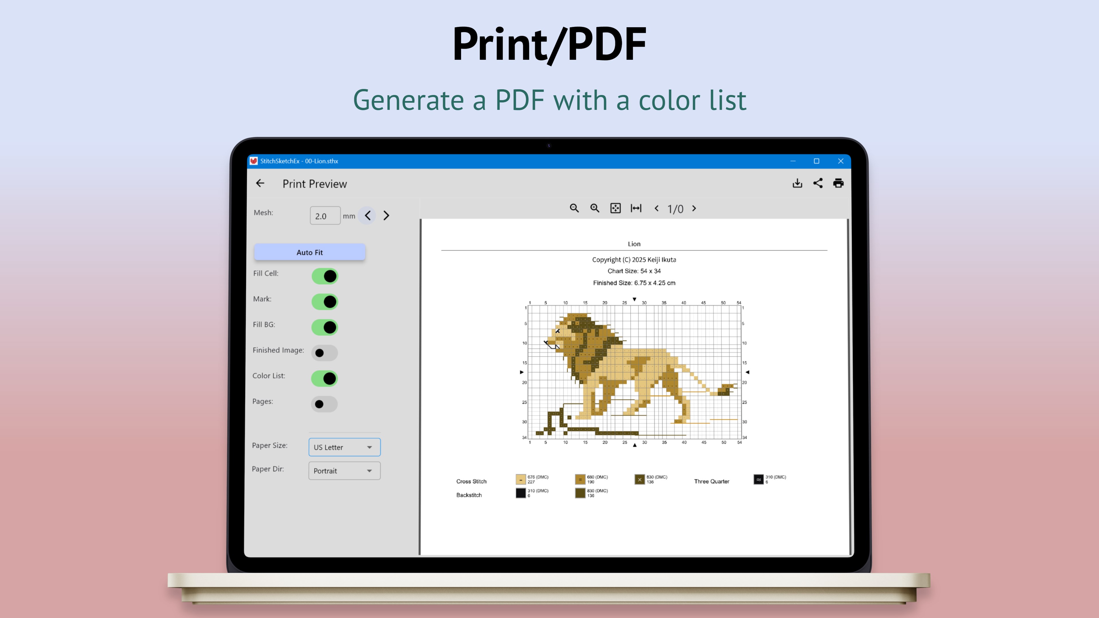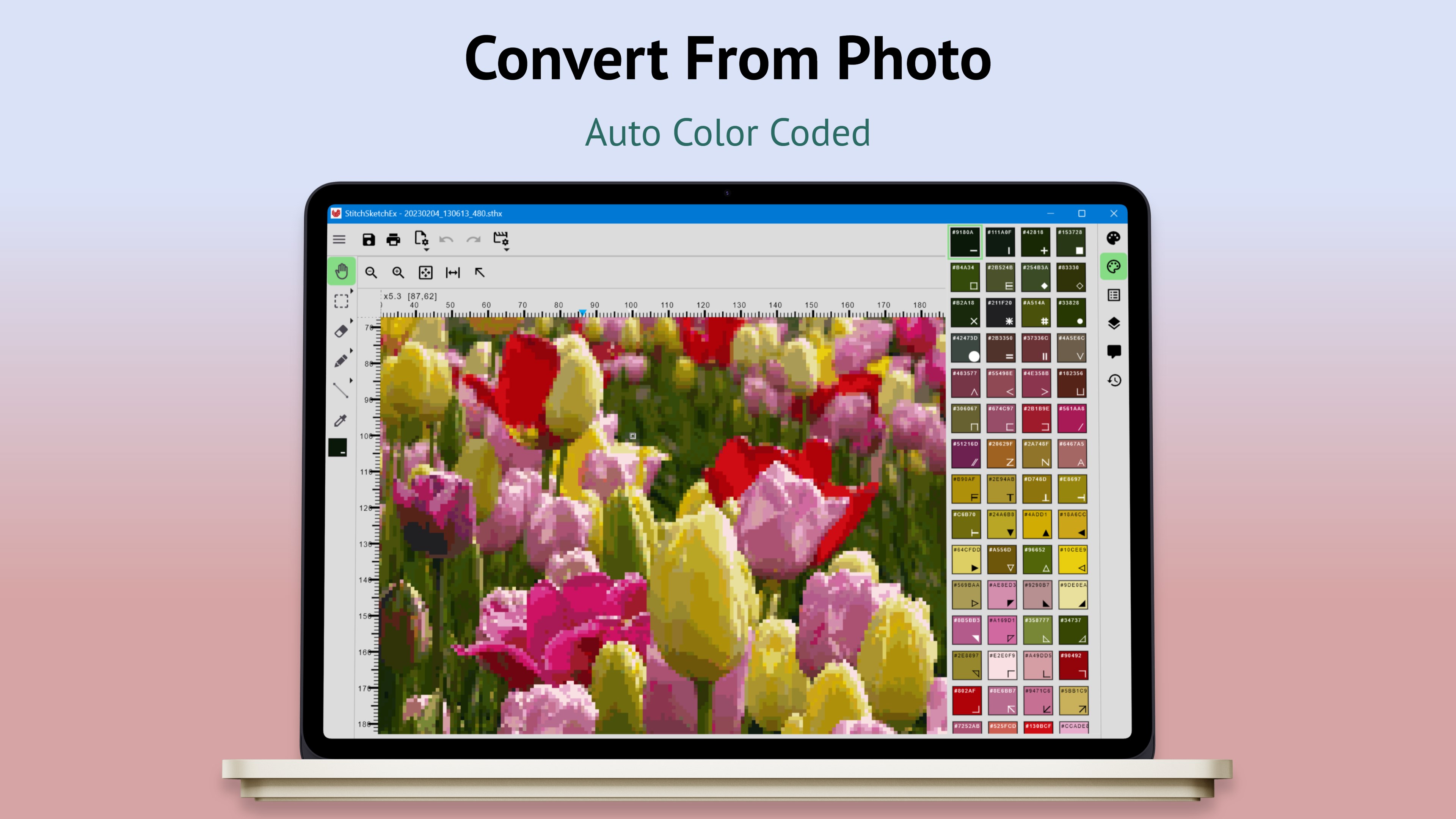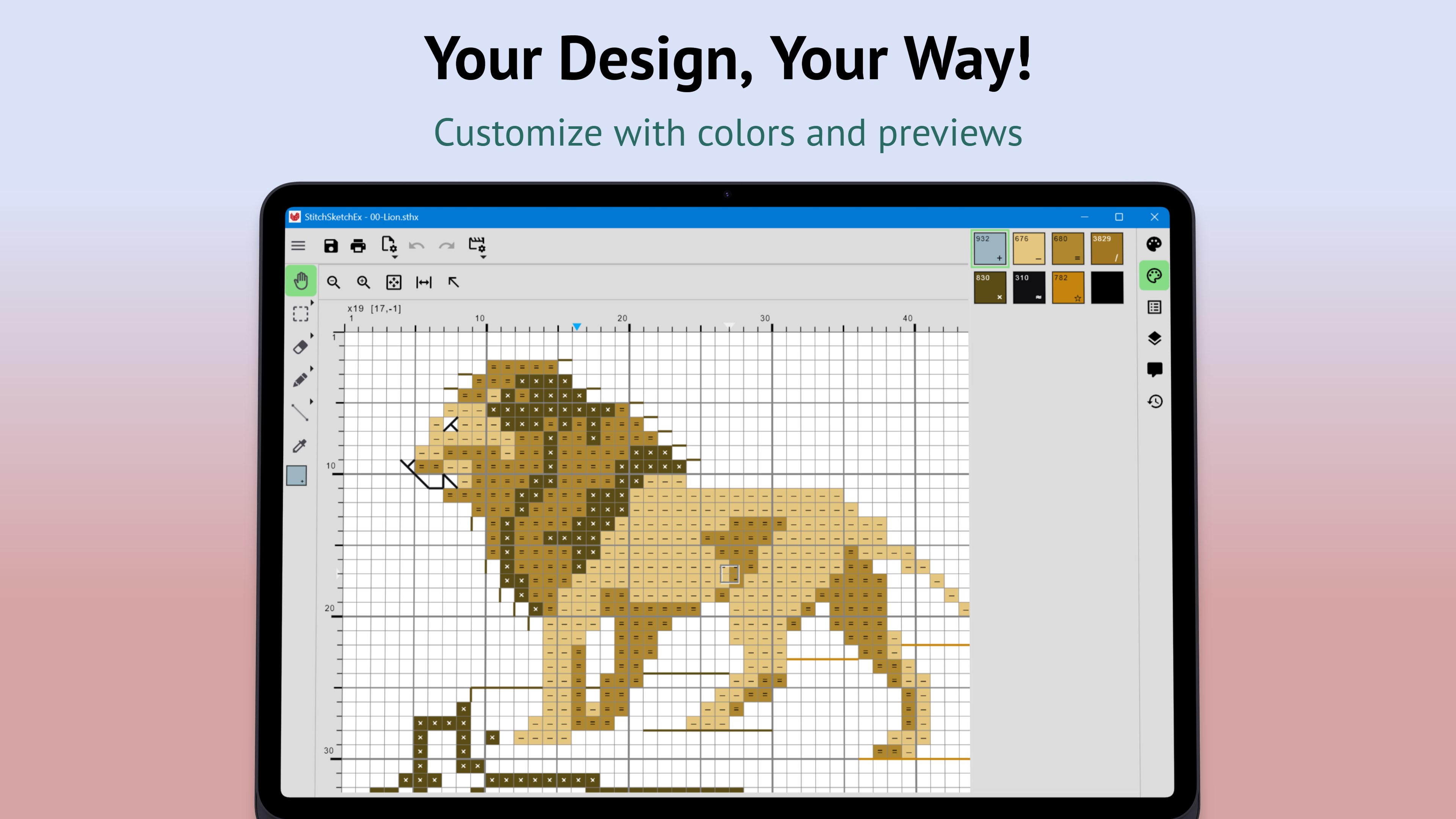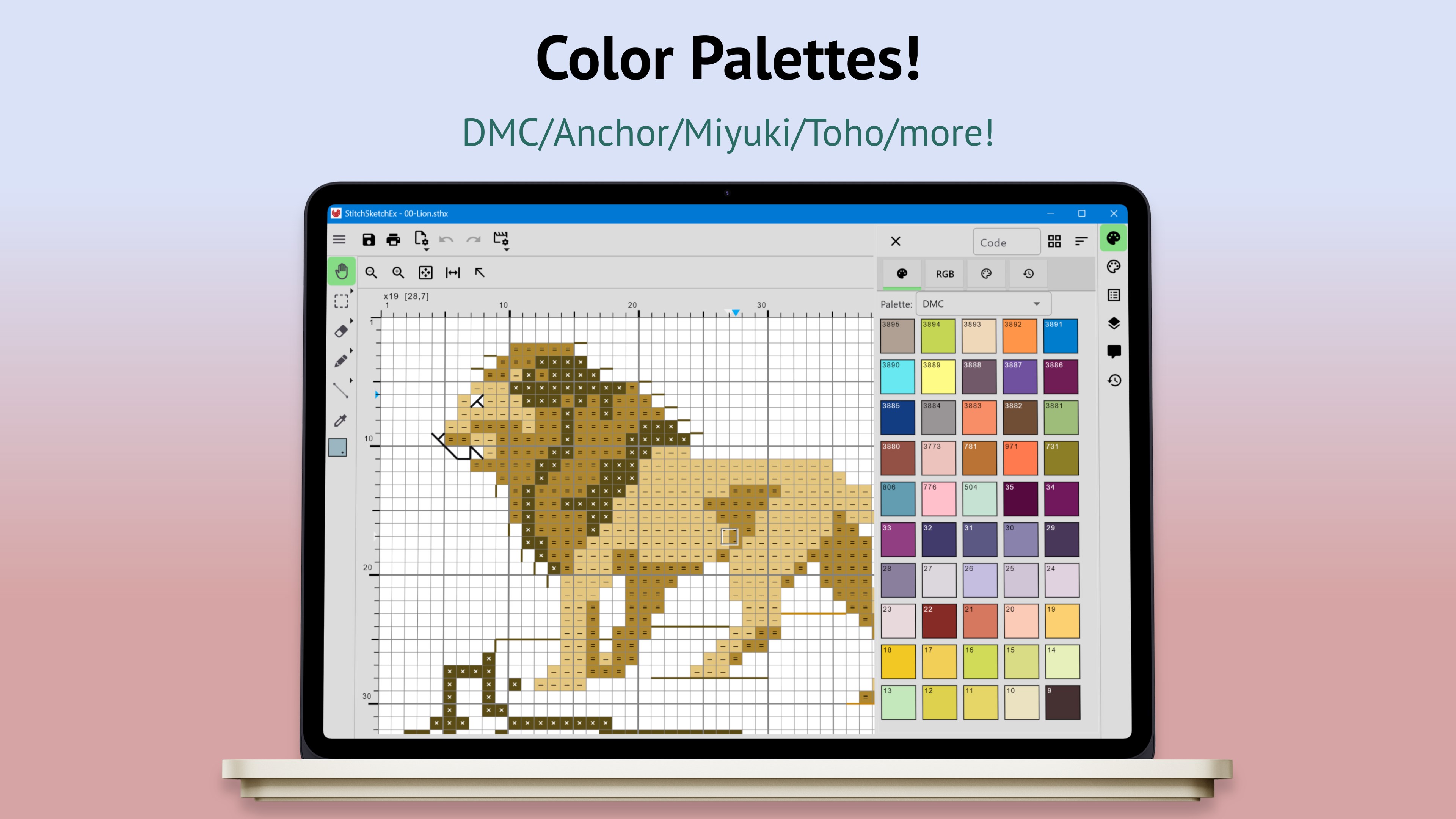 StitchSketchEx is developed by a creator of the popular software program "KG-Chart for Cross Stitch" and "StitchSketch".