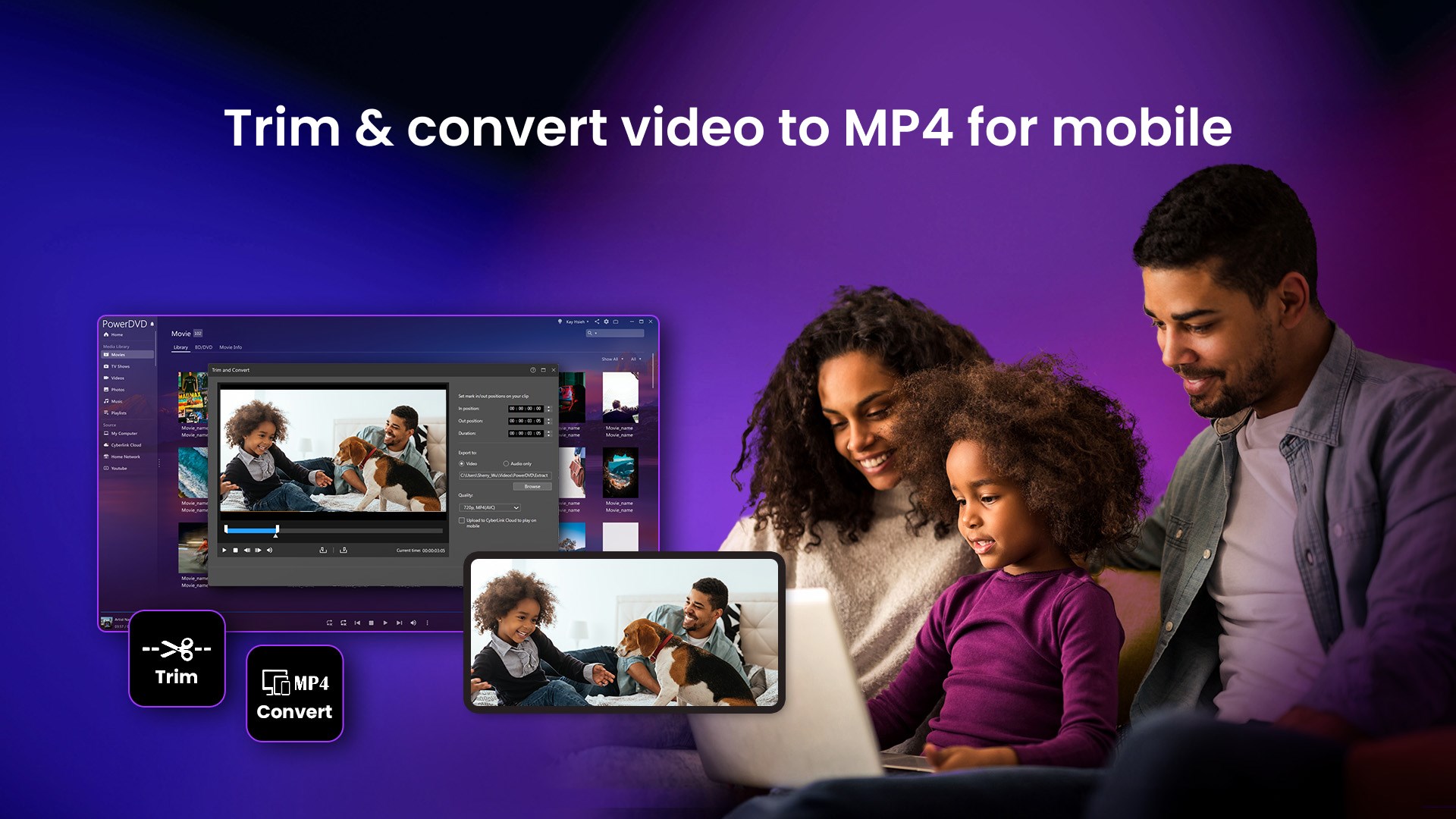 • Convert and Trim: Trim & convert video to MP4 or AAC/MP3 for mobile.