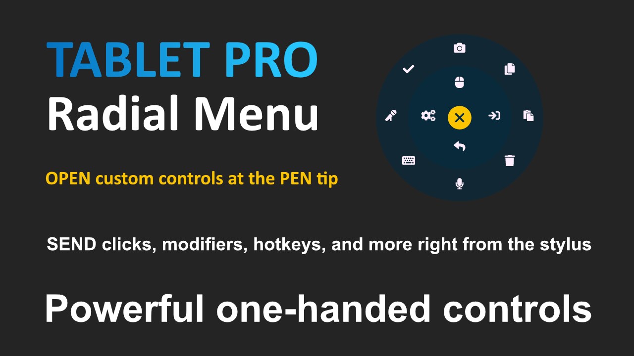 touch panel with application specific keyboard hotkey buttonspen app to add abilities to your stylus buttons and useeasy tablet related windows settings in the hub (hide taskbar)your input toolbelt for when you are moving aroundvirtual trackpad to turn the screen into a touchpad to use the mouse pointer (not touch events)radial menu to add controls right at the pen tipvoice commands to send hotkeys, modifiers, text expansion, or open websites or appsuse handwriting to expanded text strings that are hard to do with handwriting and time consuming