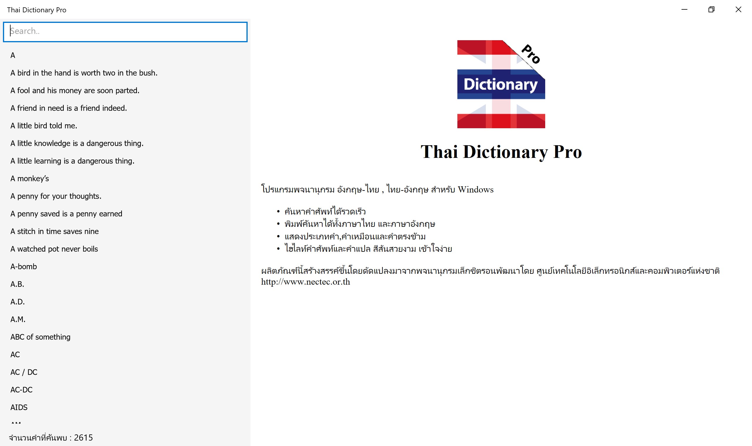The fast English - Thai , Thai - English Dictionary for Windows.