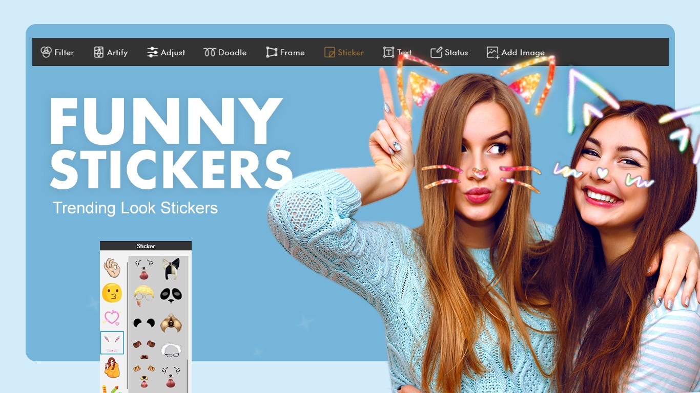One app where you can click, edit and share your pictures easily. Add stickers, texts, filters and a lot more to your pictures in just one place