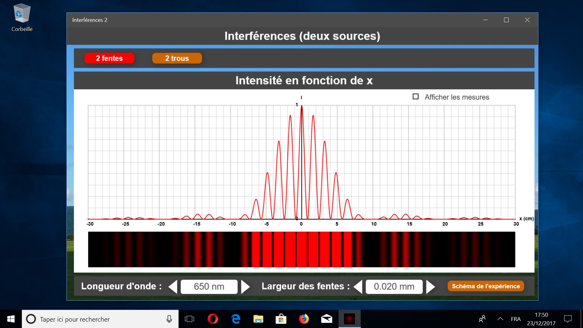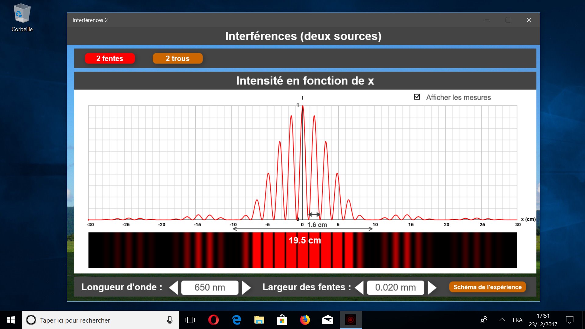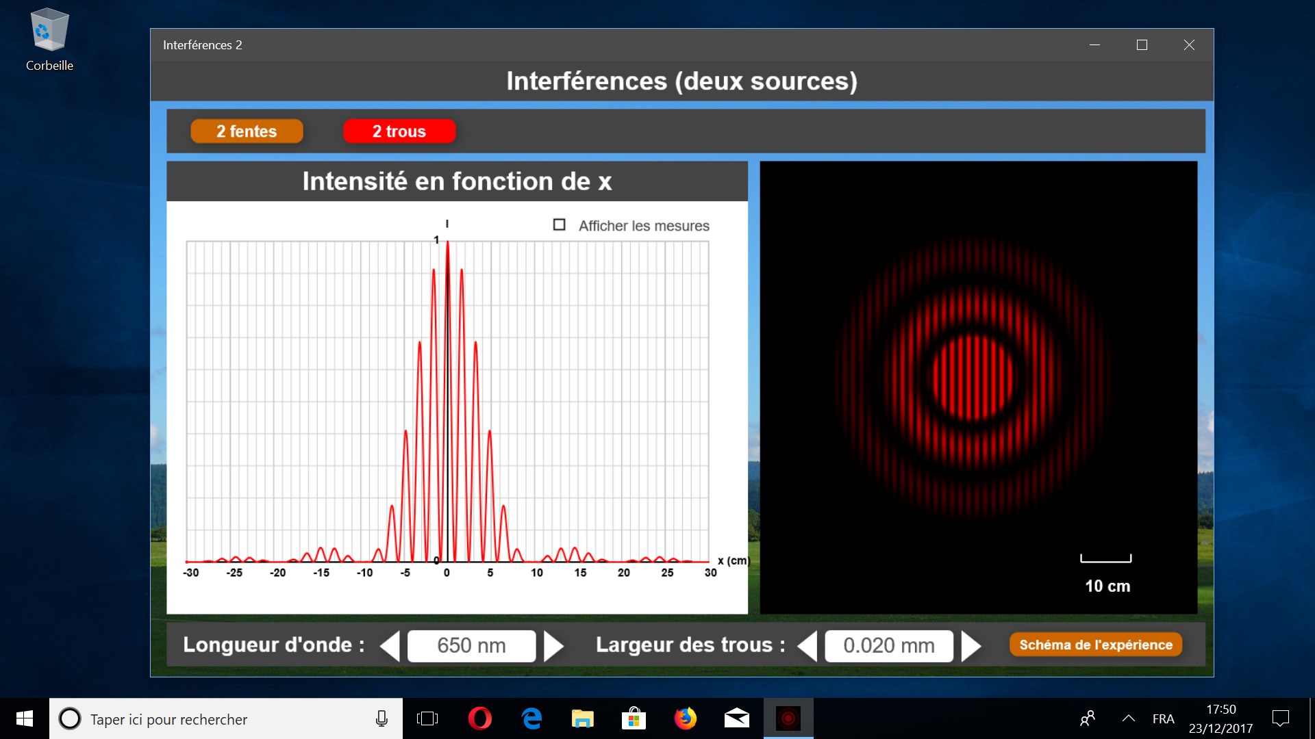 Il est possible de modifier la longueur d’onde du laser et la largeur des fentes ( ou des trous ).