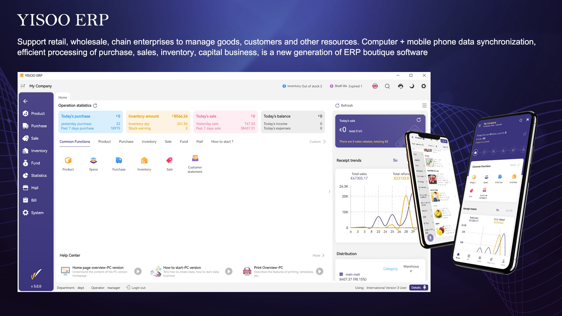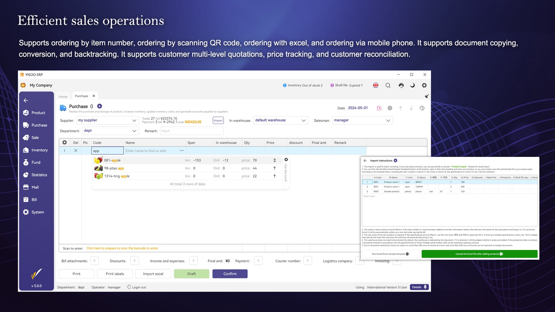 Efficiently manage purchase, sales, inventory, and capital operations, and simultaneously build a WeChat mini-program mall. All-in-one, easy to use, it is a new generation of premium mobile ERP software.