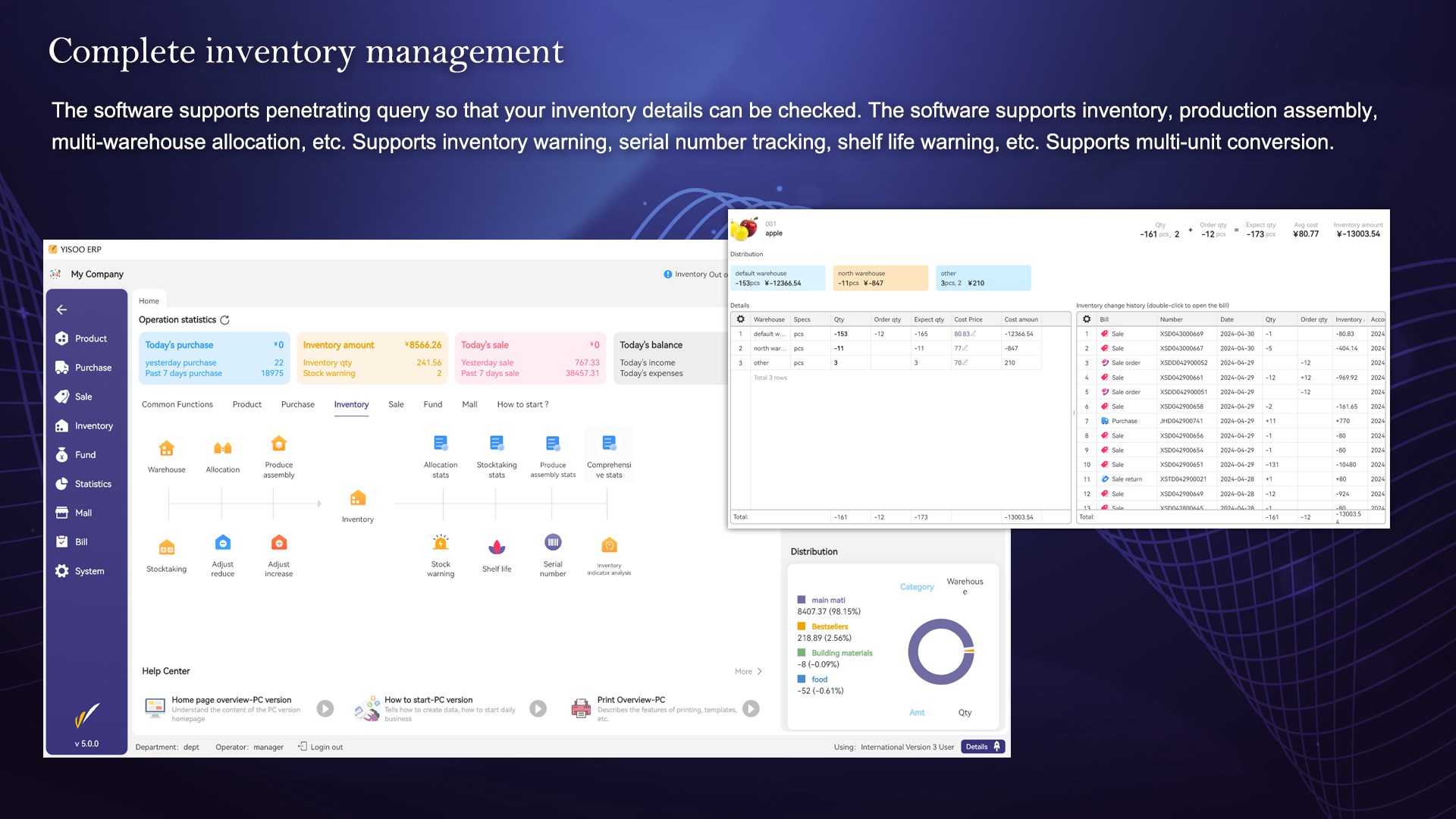 3. Track product inventory and multi-store distribution in real time, and master inventory change history. Comprehensively sort out the arrears and past running accounts of suppliers and customers.