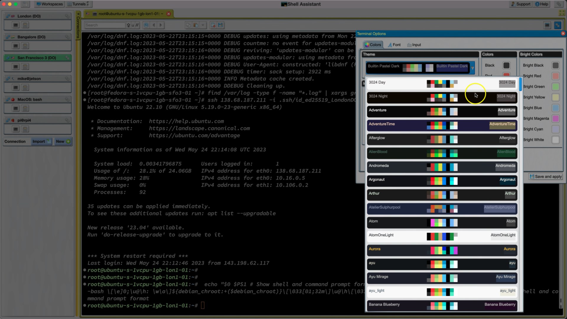 Version 0.9.5 adds Terminal: side-bar improvements, transparent gradient and image backgrounds, font improvements, more fonts, initial command for new shells, multiple terminal profiles, assign terminal profiles to connections. Editor: Edit markdown files. General: performance improvements and bug fixes.