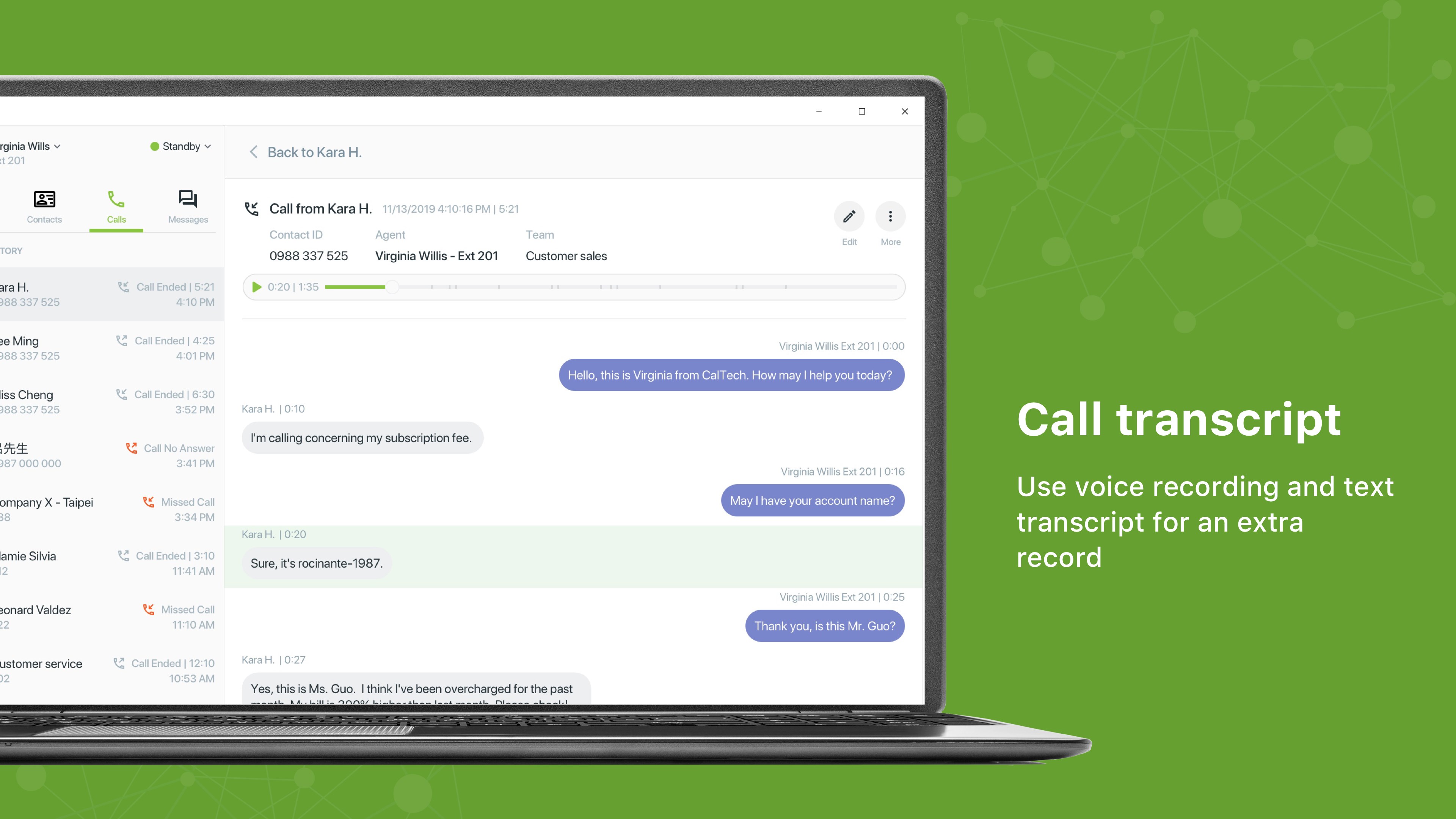 - Customer service features like group ring and voice recording