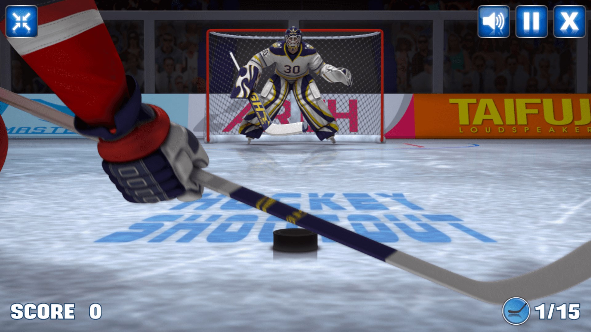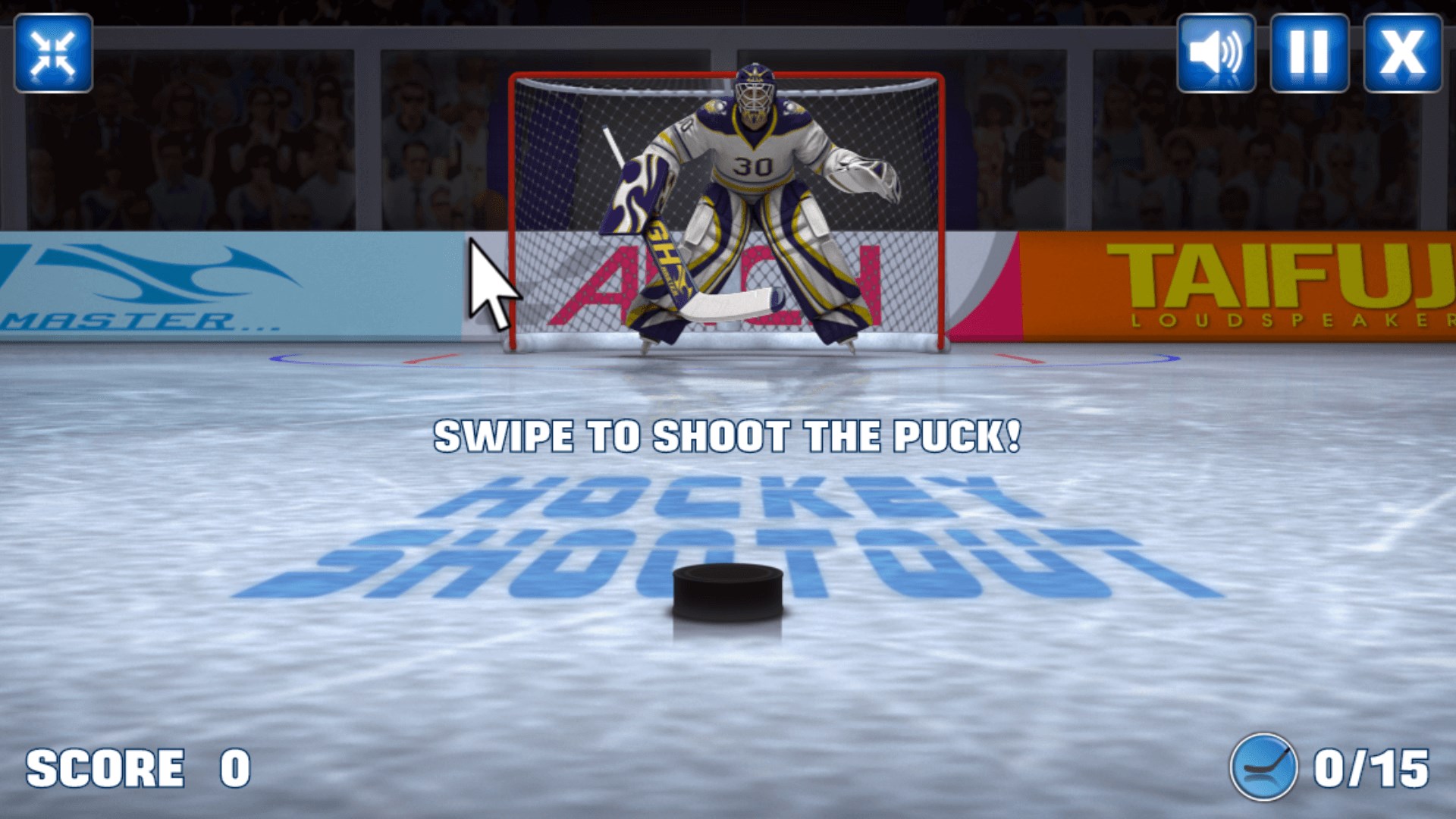 Shoot the puck with strength and precision and defeat the goalkeeper!