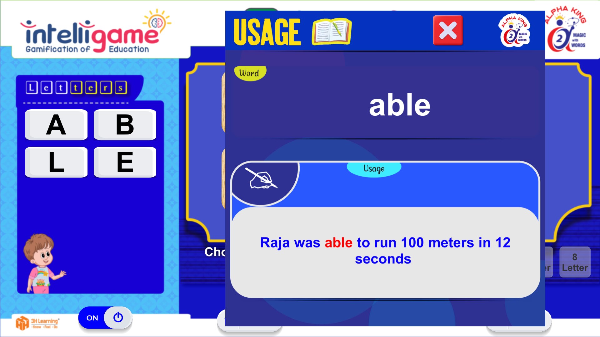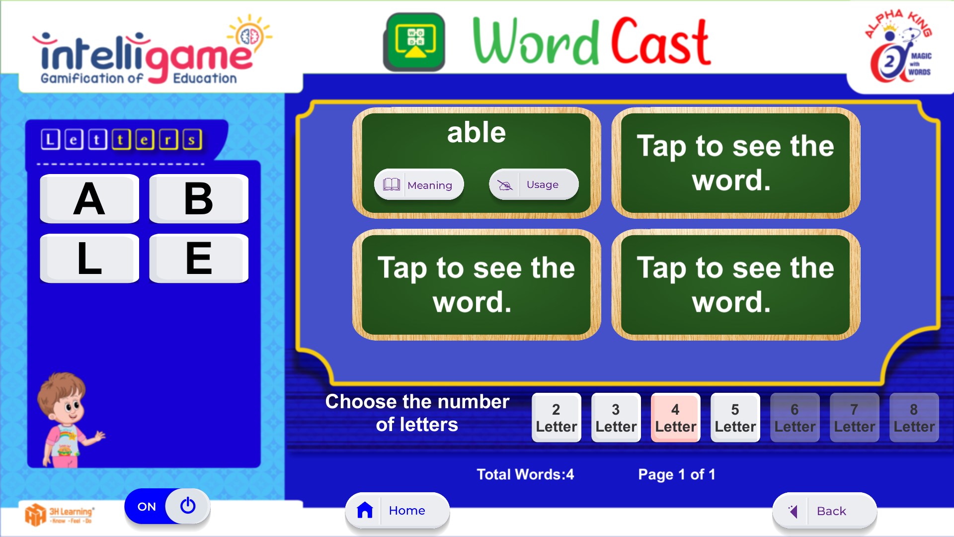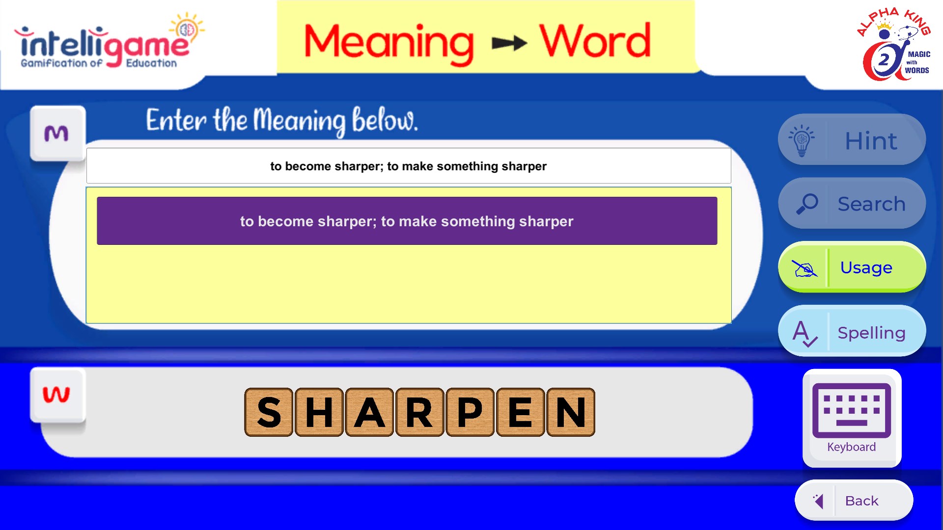 Instead of getting the word instantly, the user can also choose to discover the word in a step-by-step process of getting one clue after the other before discovering the word by clicking the ‘HINT’ button. This adds a lot of thrill to the learning process.