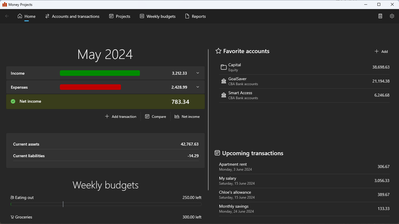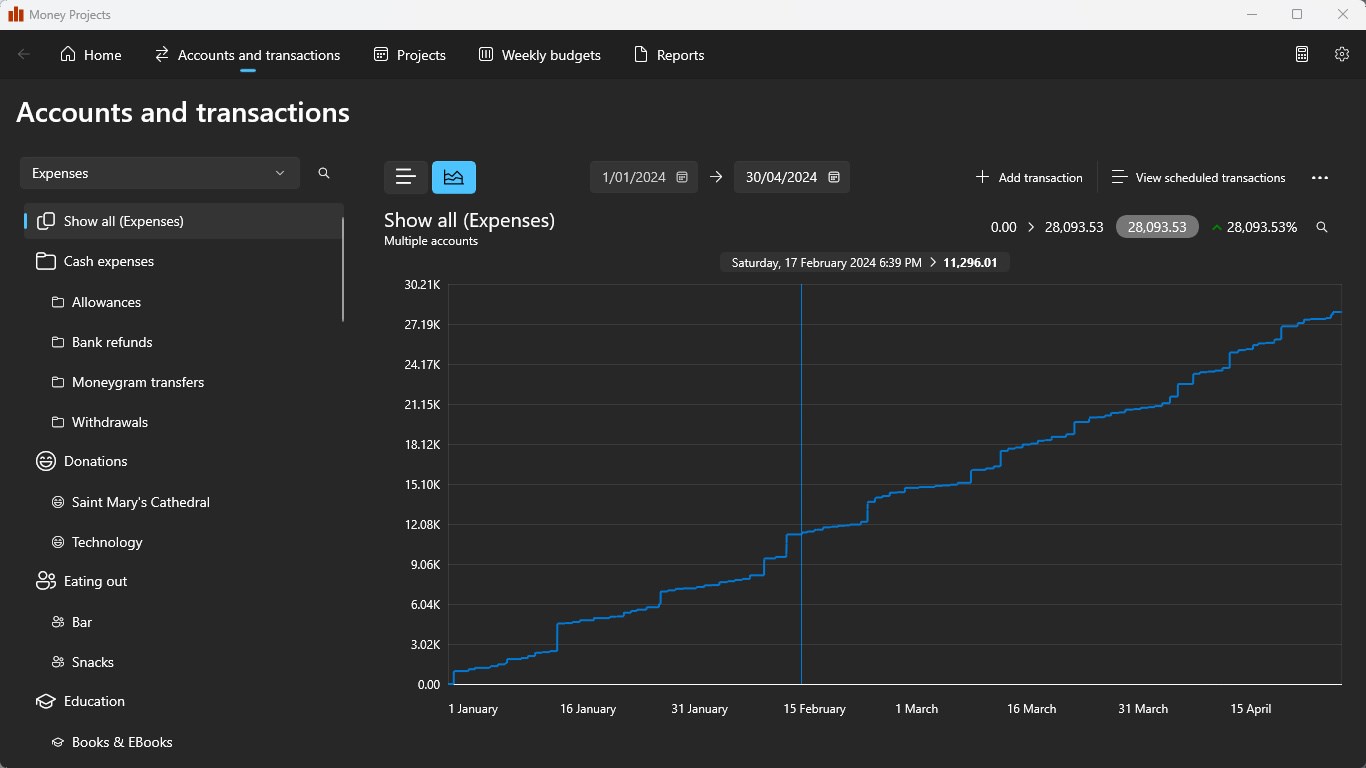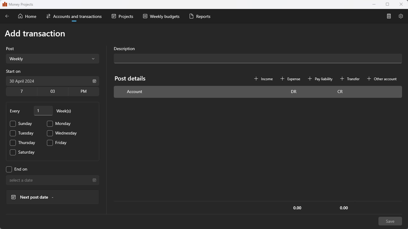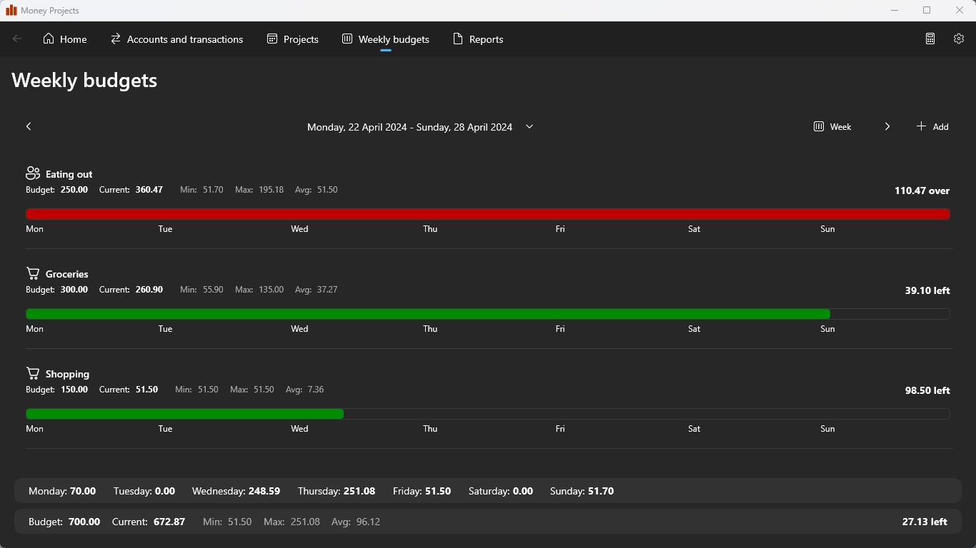 Take control of your personal finances with Money Projects. A simple double-entry accounting system for personal use.