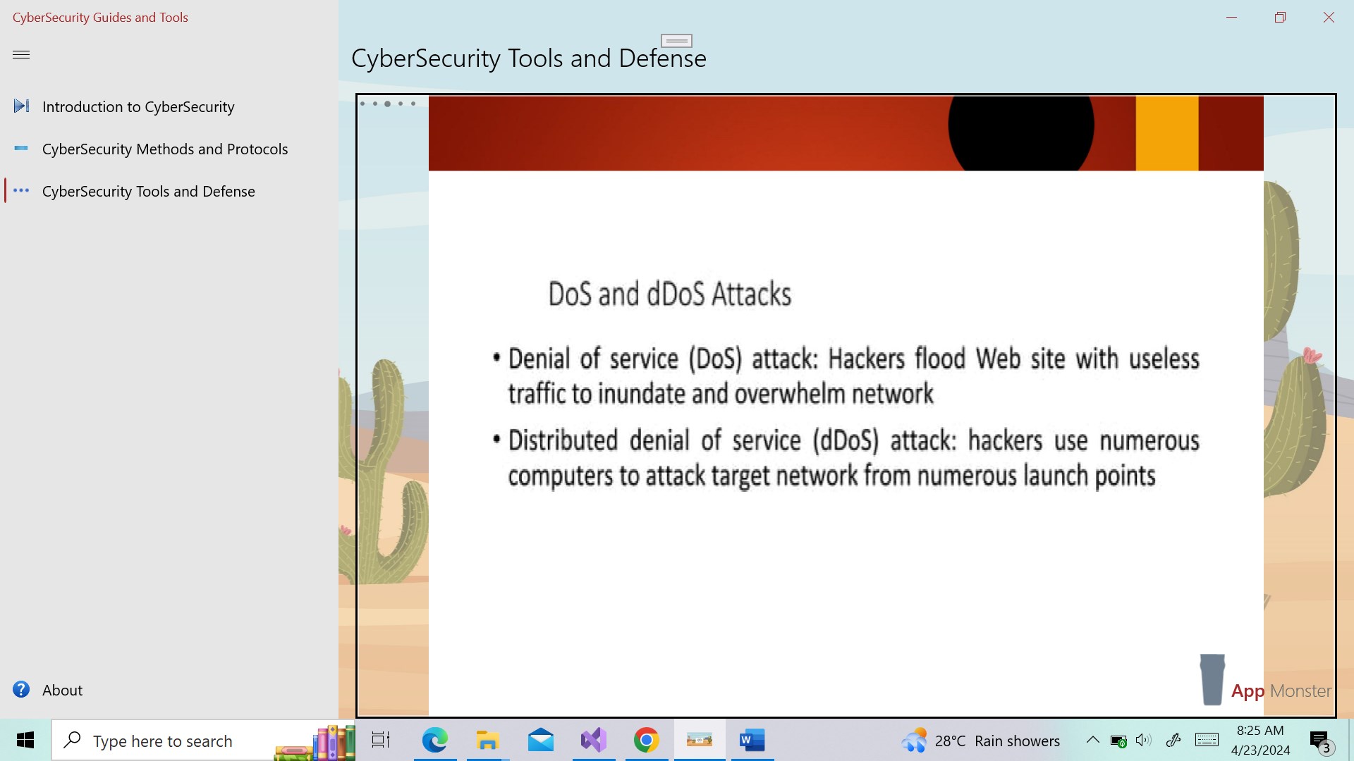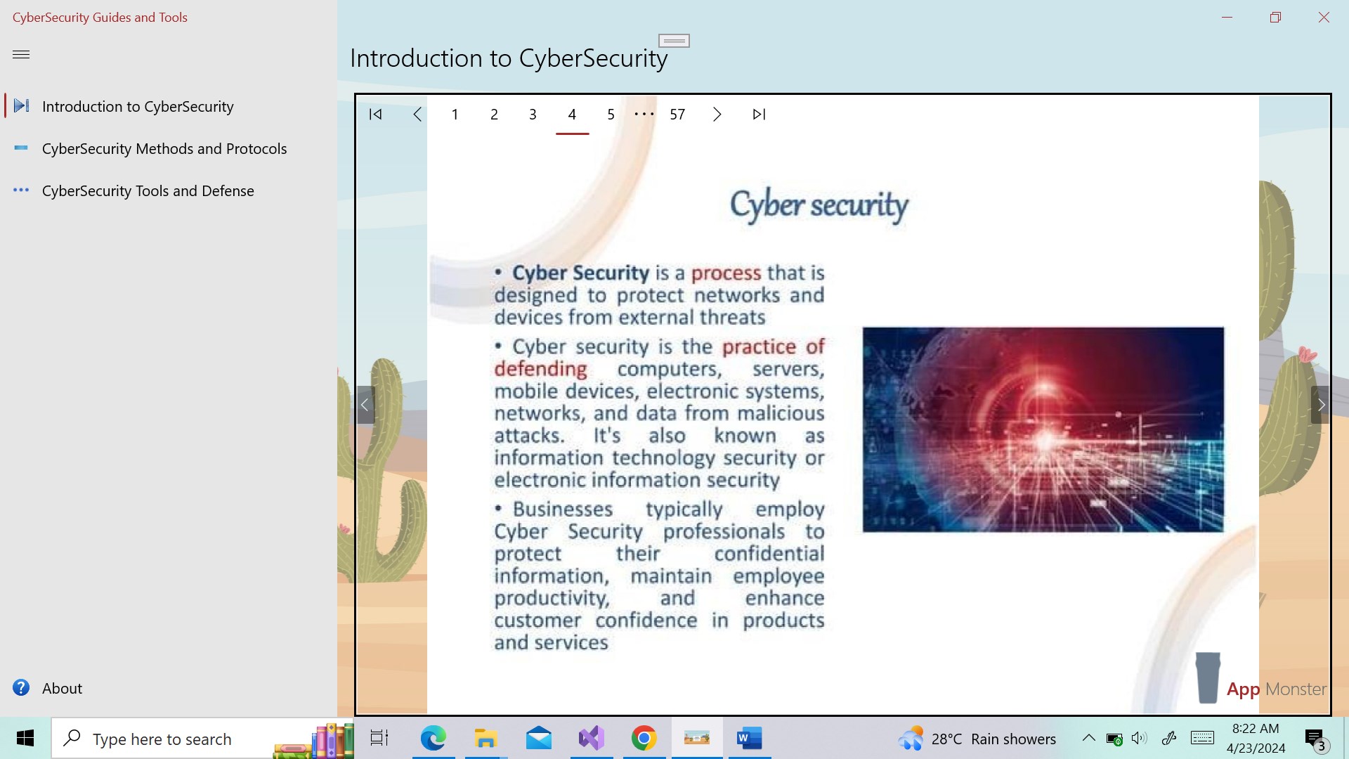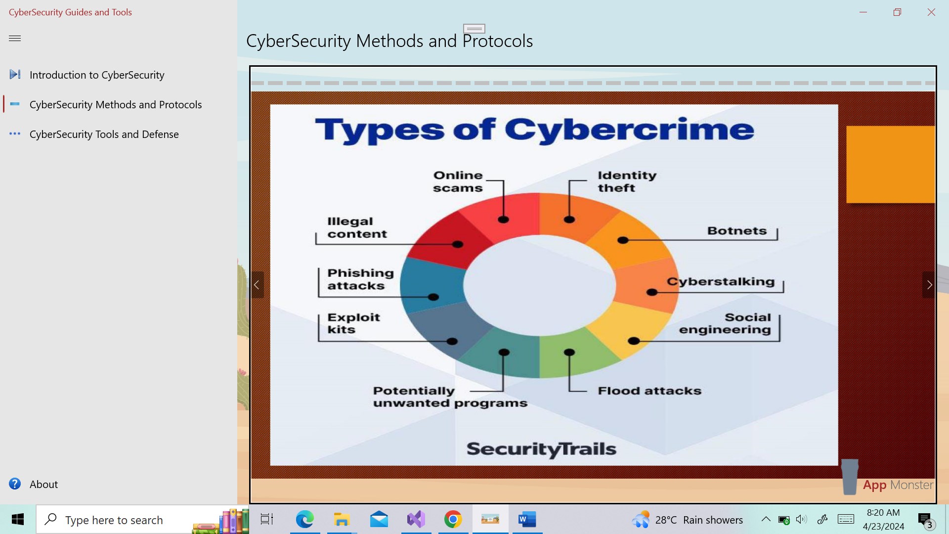 This app provides a detailed guide on Cybersecurity and Tools. The contents of this app include:
