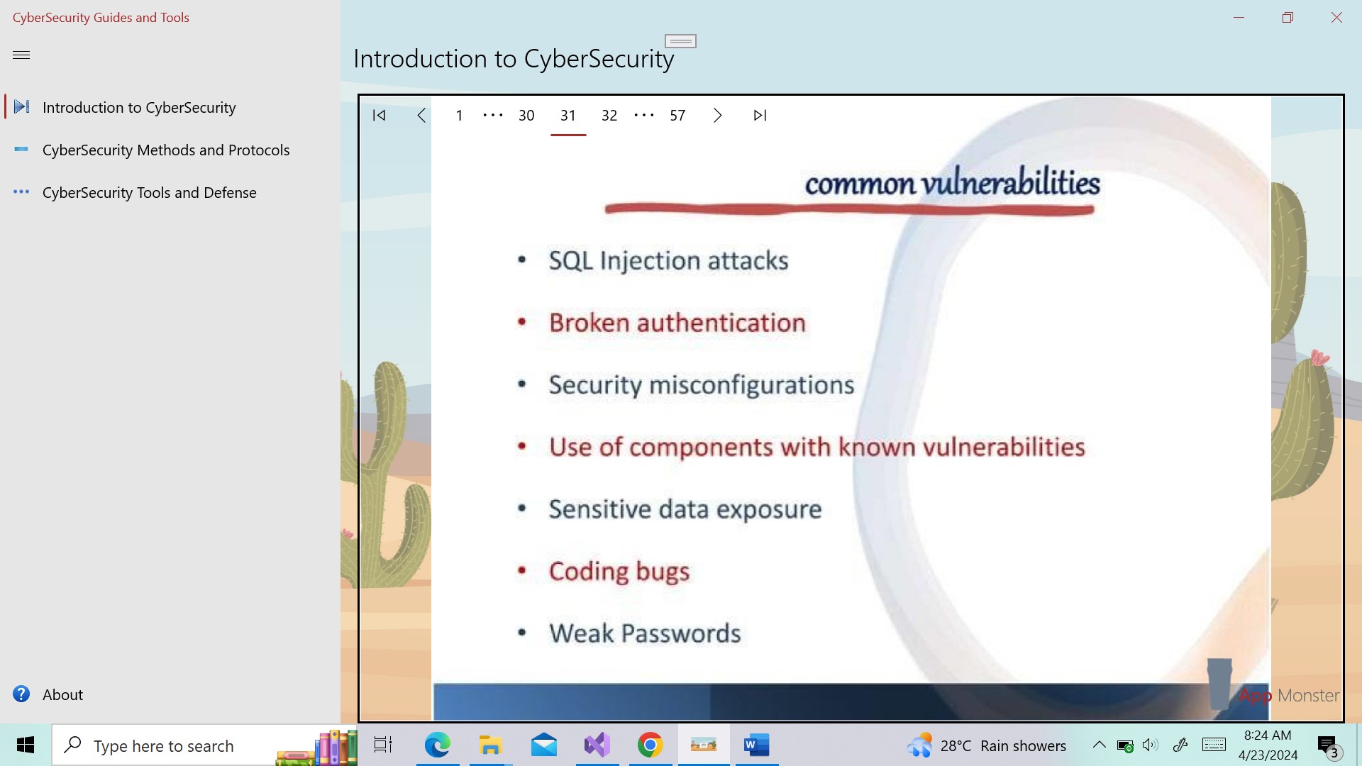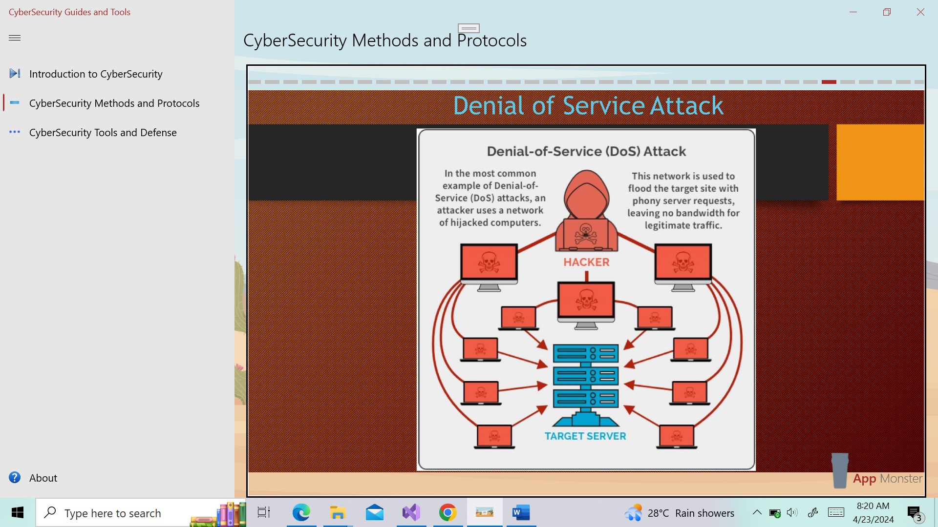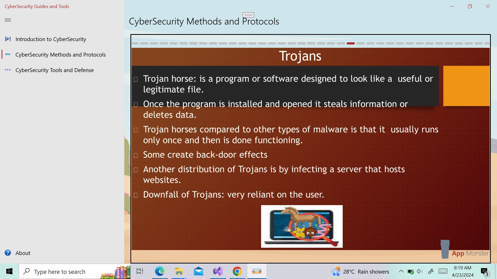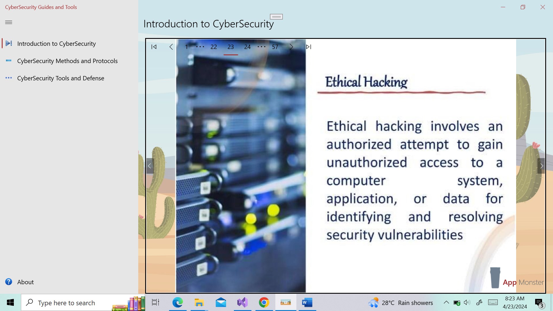 This app provides a detailed guide on Cybersecurity and Tools. The contents of this app include: