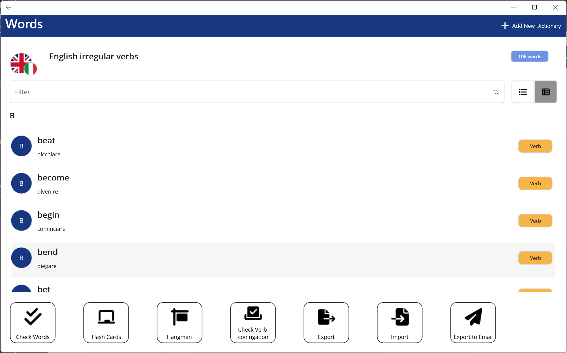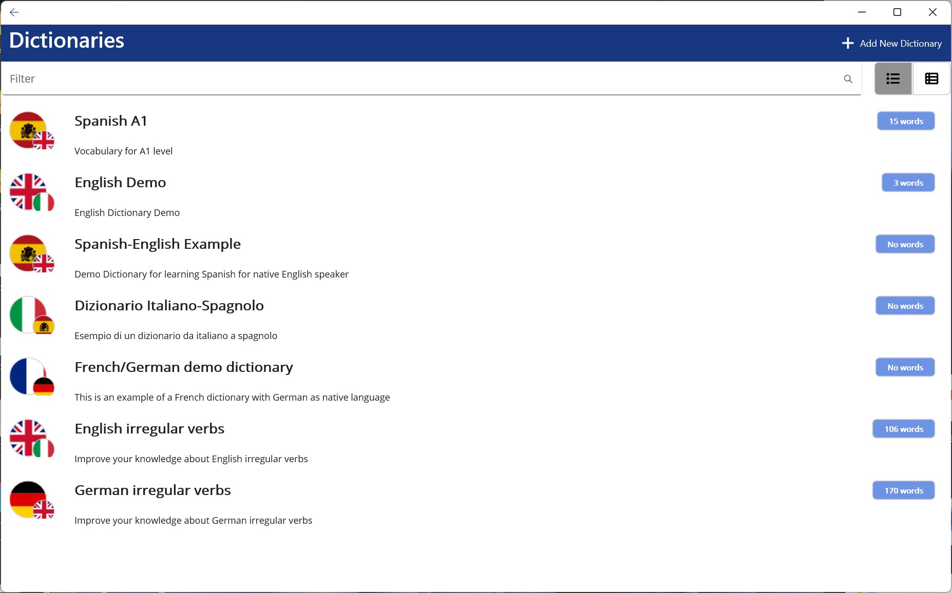 When you start to learn a new language, the most common advice from the teachers is to have a notebook where write all the new words you want to learn and remember and then review those words constantly to memorize them. With the words on the piece of paper, it is difficult to search for a specific word or meaning. Also, it is not fun or interactive and you can't share or practice with your friends.