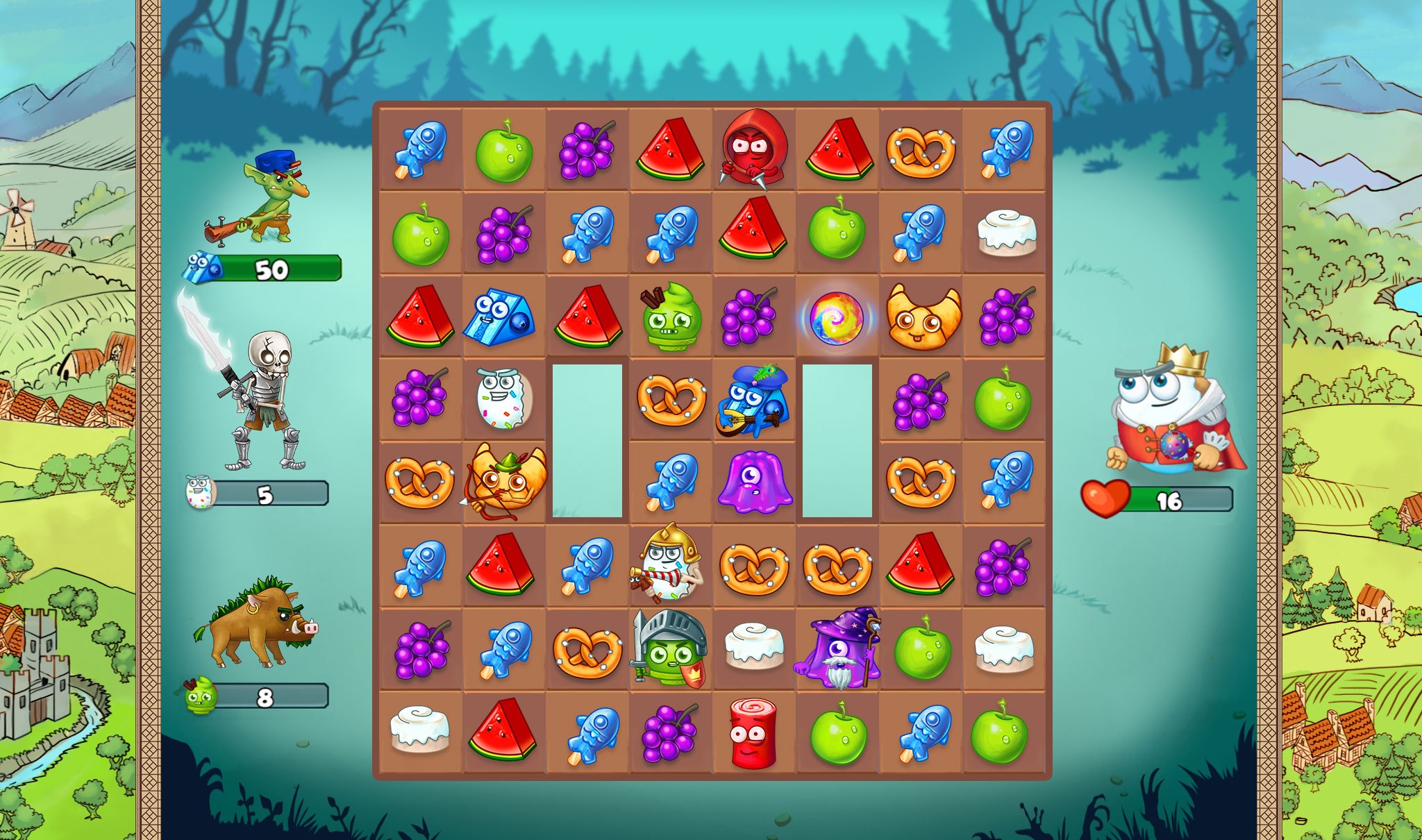 Immerse yourself in a beautiful world of sweet history! The medieval atmosphere and amusing characters will not leave you indifferent. Match three sweets in a line and create many delicious combinations to help King Donuttan The Third regain his throne. Who knows, maybe YOU will become his heir?
