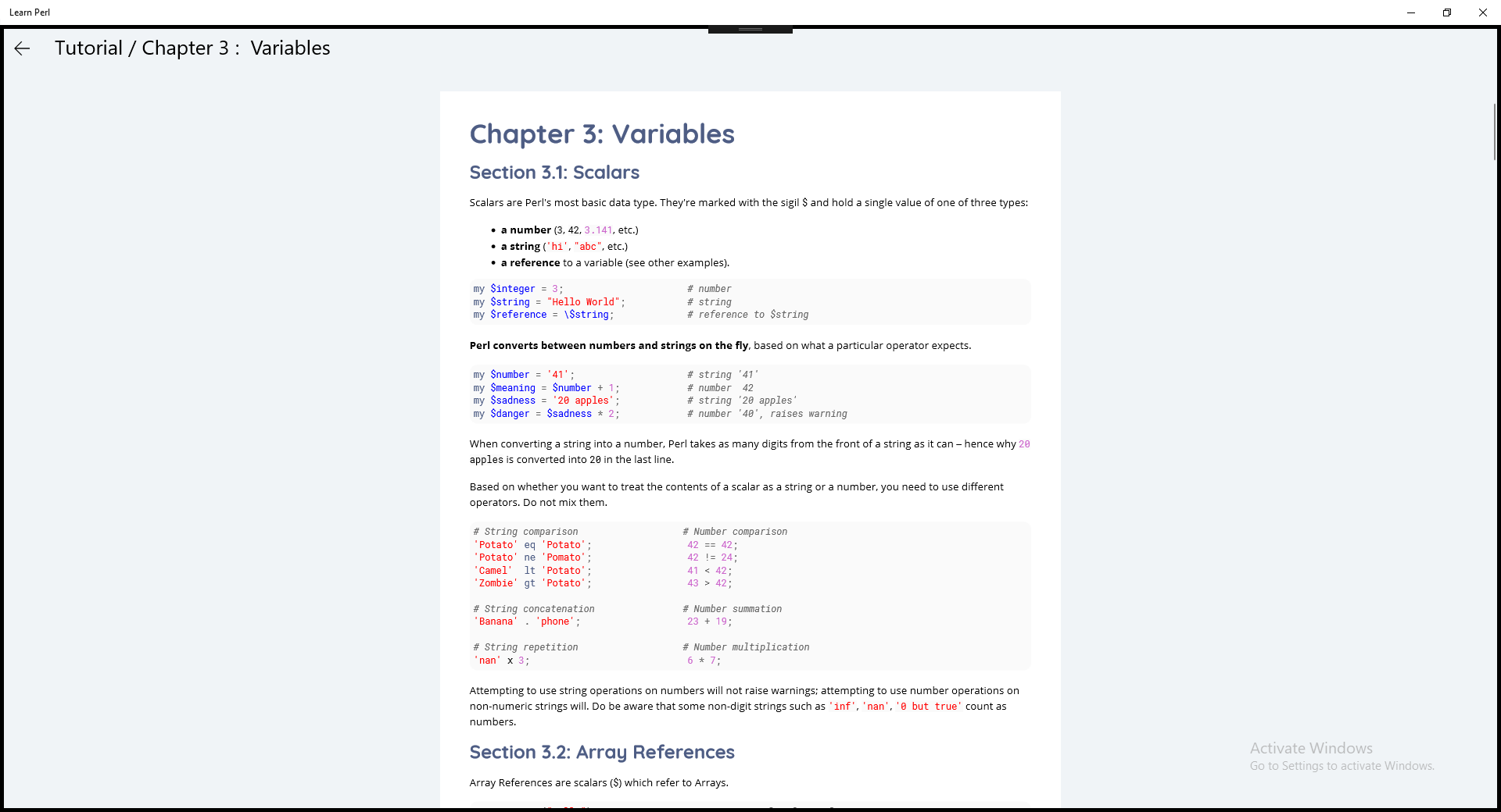 This app contains tutorials and reports for the all who want to Learn Perl.