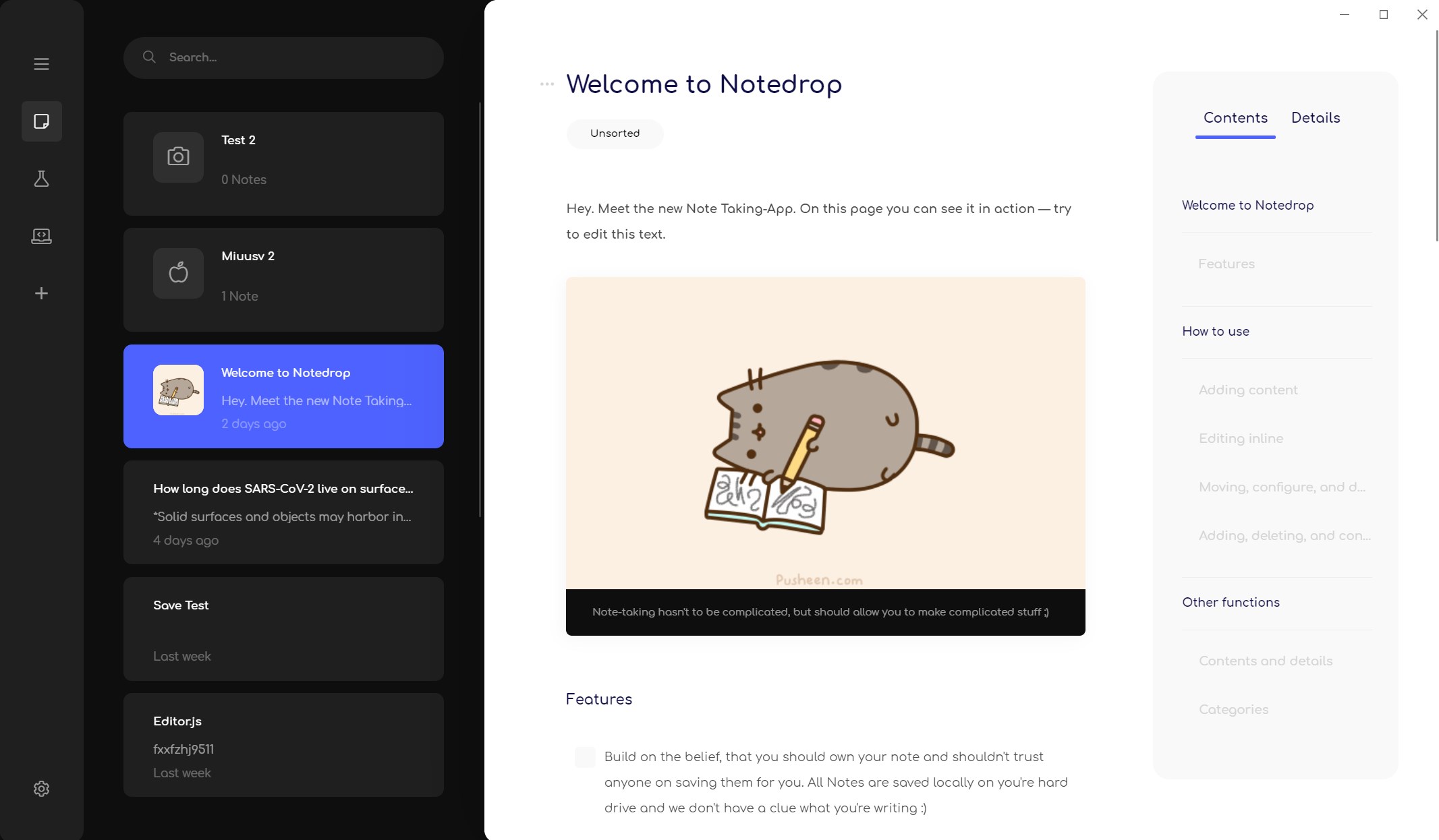 Notes saved locallyCan display many types of contentModern looking designDoes take user feedback seriously