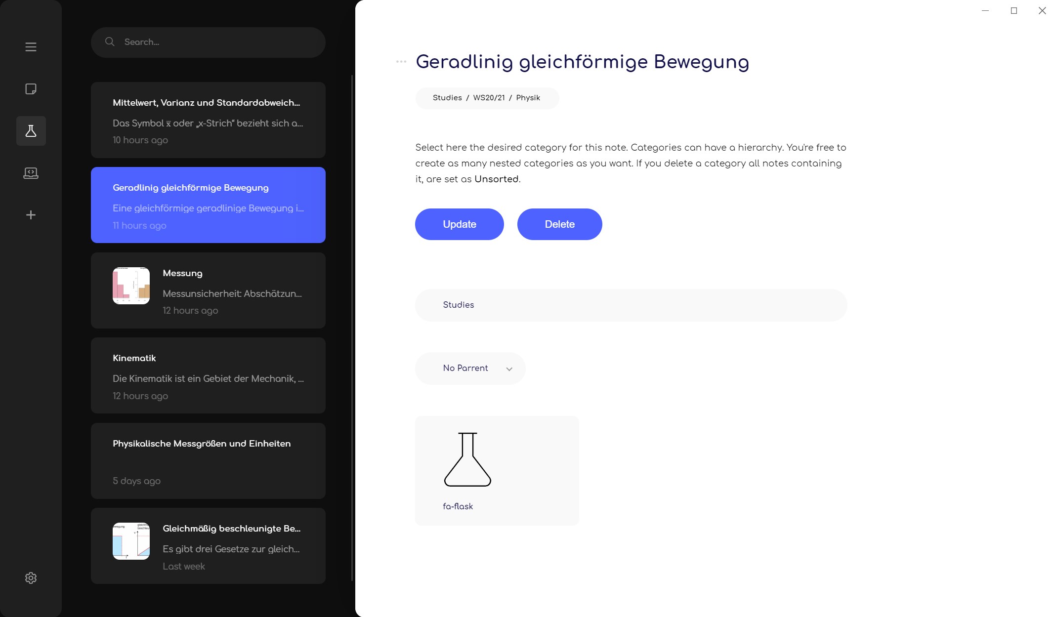 - Added category quick nav: The path under the main title of each screen serves now as a quick nav which lets you jump through categories similar to a file browser. The nav on the category change window (when you change the category of a note) allows you to go one or multiple categories up.