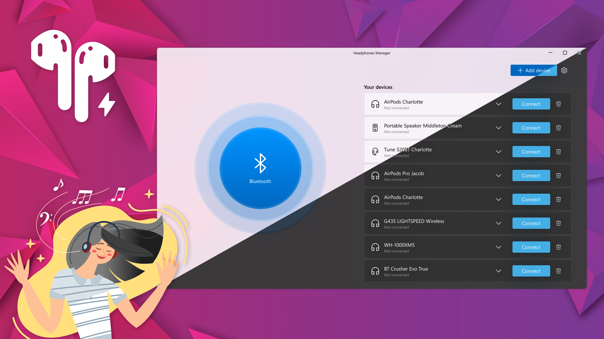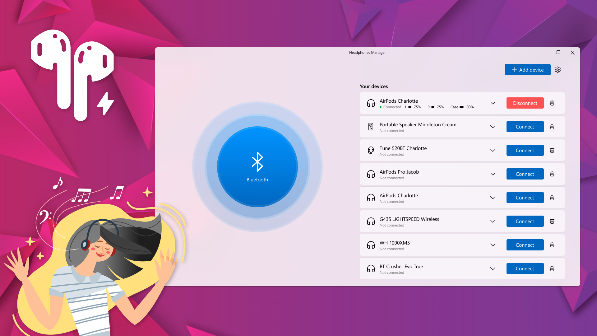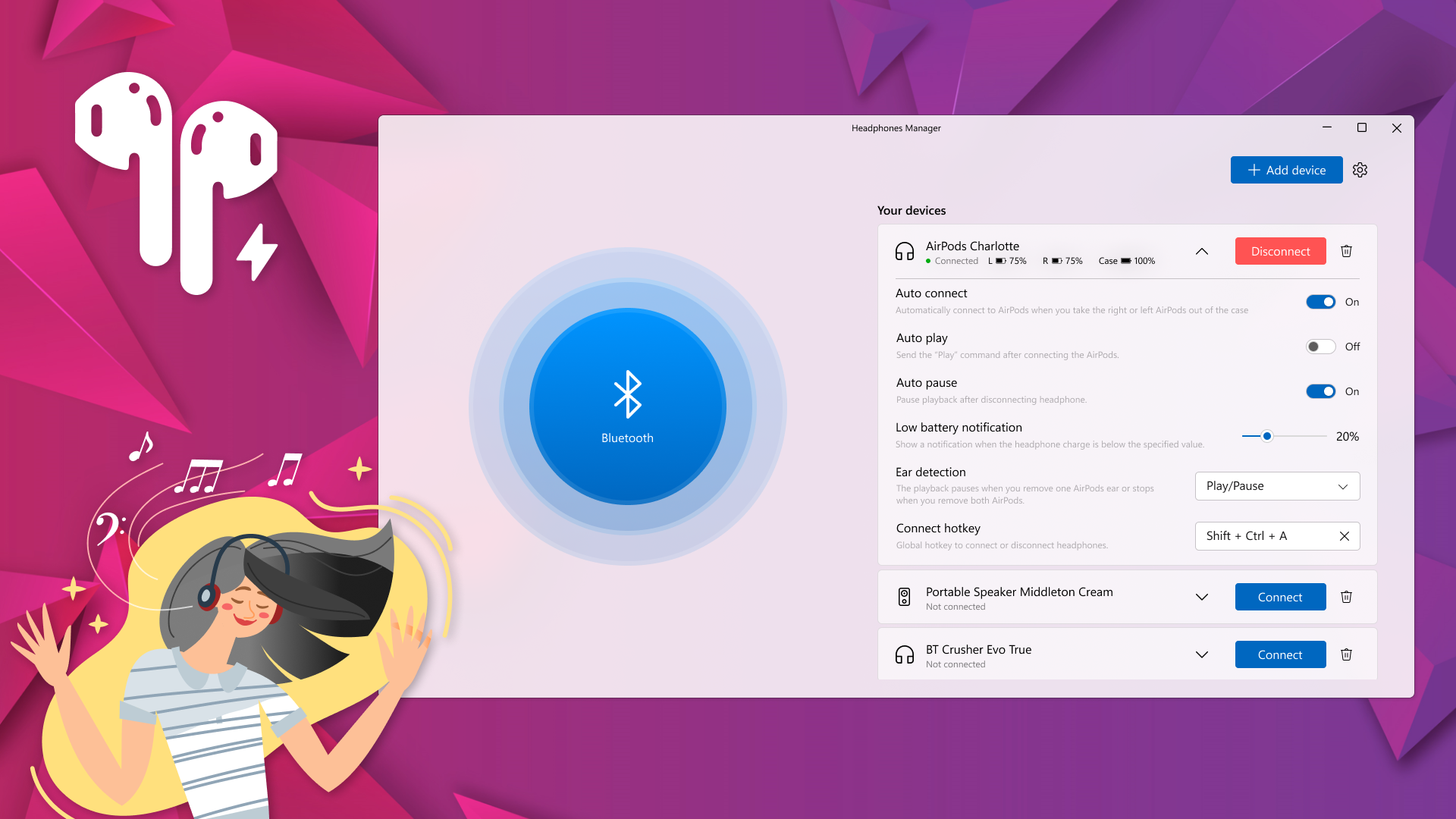 Smart Device Integration: Seamlessly connect Headphones Manager with your Bluetooth-enabled headphones, ensuring effortless synchronization and control.