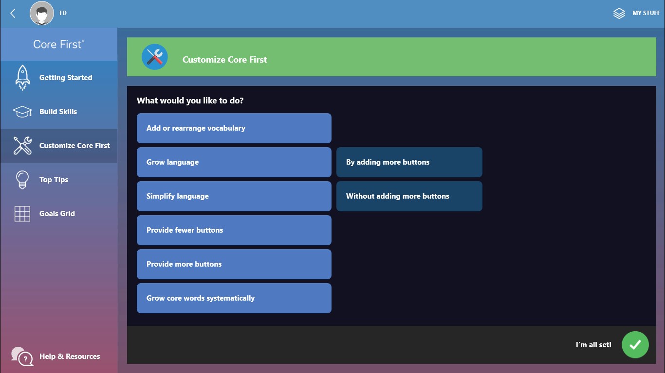 Pathways for Core First is a FREE, one-of-a-kind companion app for Core First that is packed with expert advice for how to meaningfully impact the user’s communication success. Based on best practices from experts in the field, Pathways for Core First provides lesson plans, top tips, and real-world videos to show parents, teachers, and therapists how to get the most out of Core First with confidence.