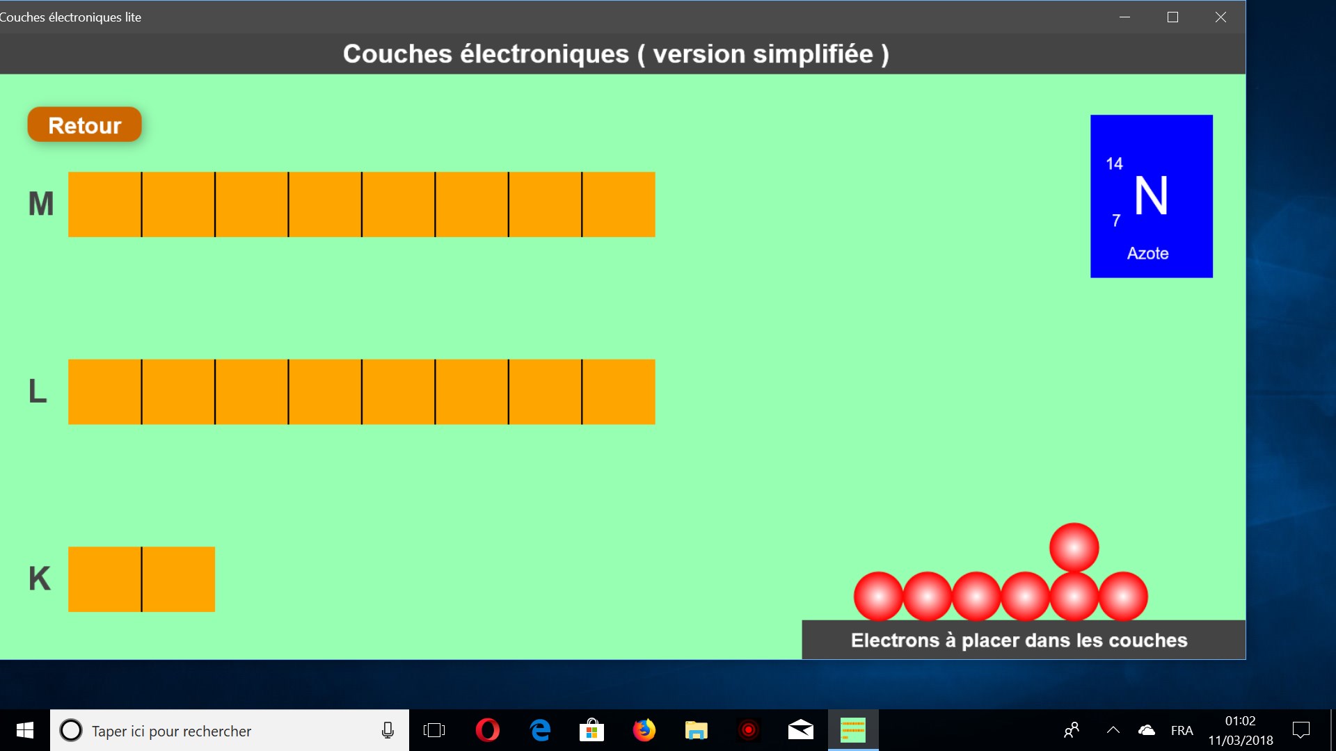A l’aide de l’application “Couches électroniques lite” les élèves ont pour objectif de découvrir quelles sont les règles qui régissent la répartition des électrons dans les différentes couches électroniques.