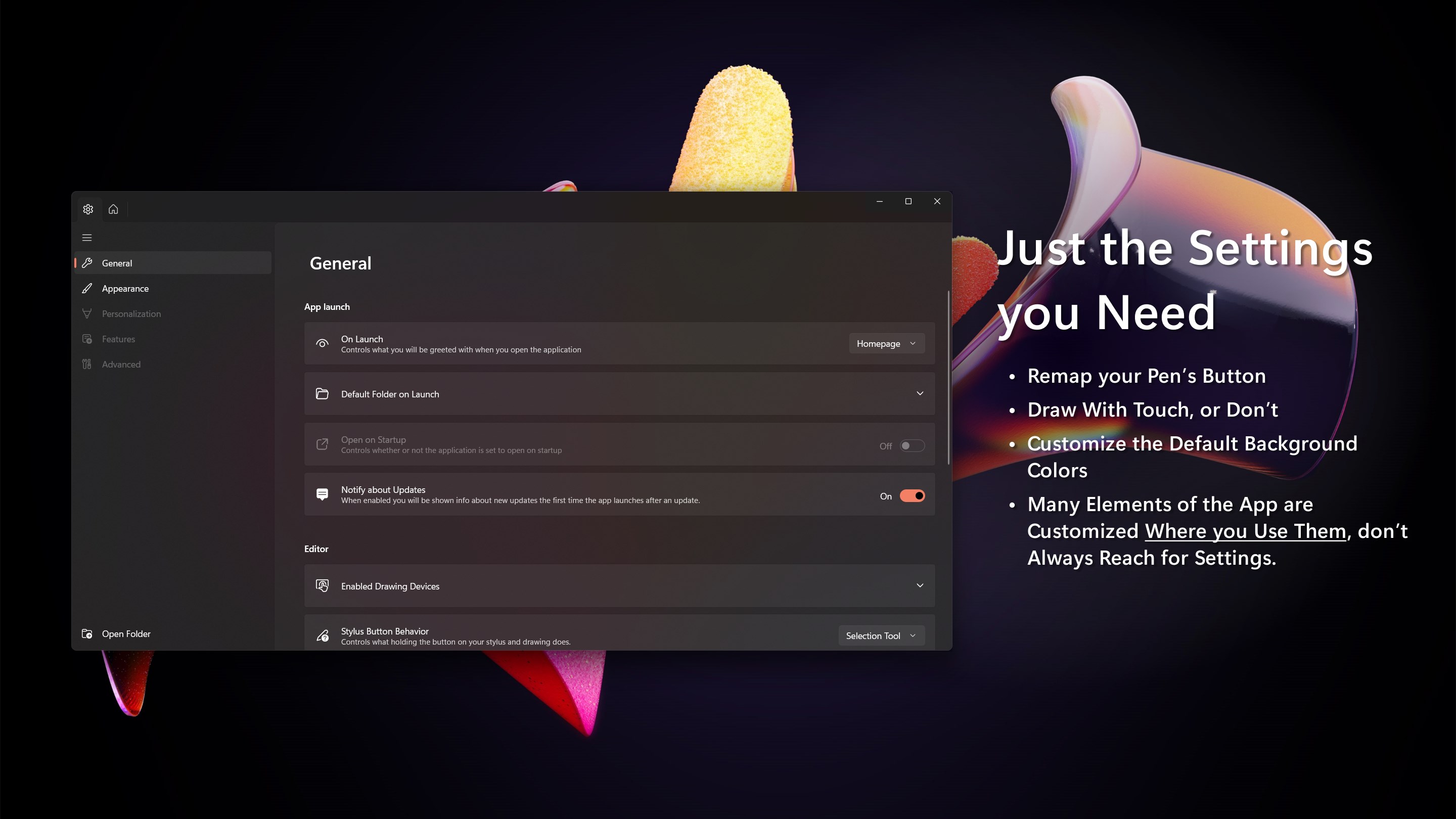 Get started by opening the app and opening a folder (button in bottom left) on your computer that you want to use to store your notebooks. Once you have the folder open, click the "New Notebook" button in the top right to create a notebook. Double-click on the notebook to open it, then start drawing!