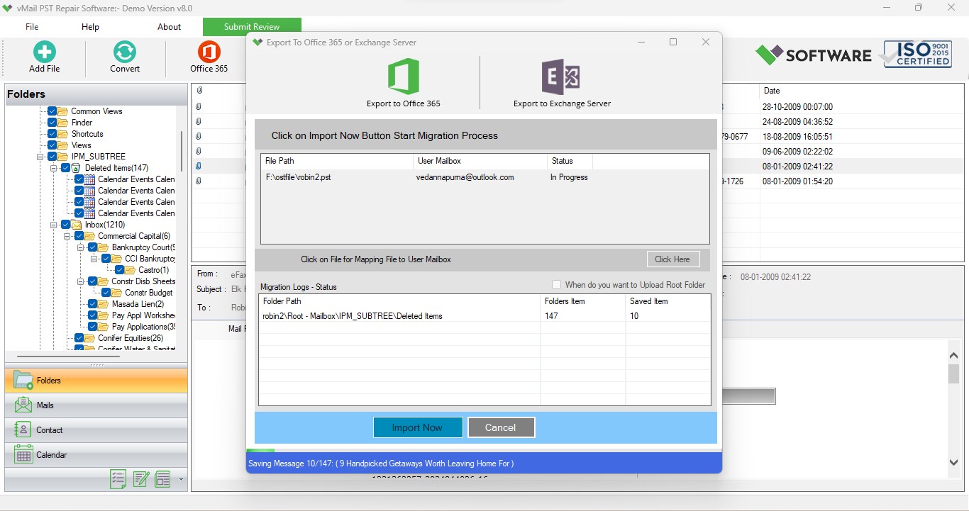 Limitation: Demo version enables you to preview and save 30 items into Outlook PST File format, import Office 365 mailboxes account and others selected format.