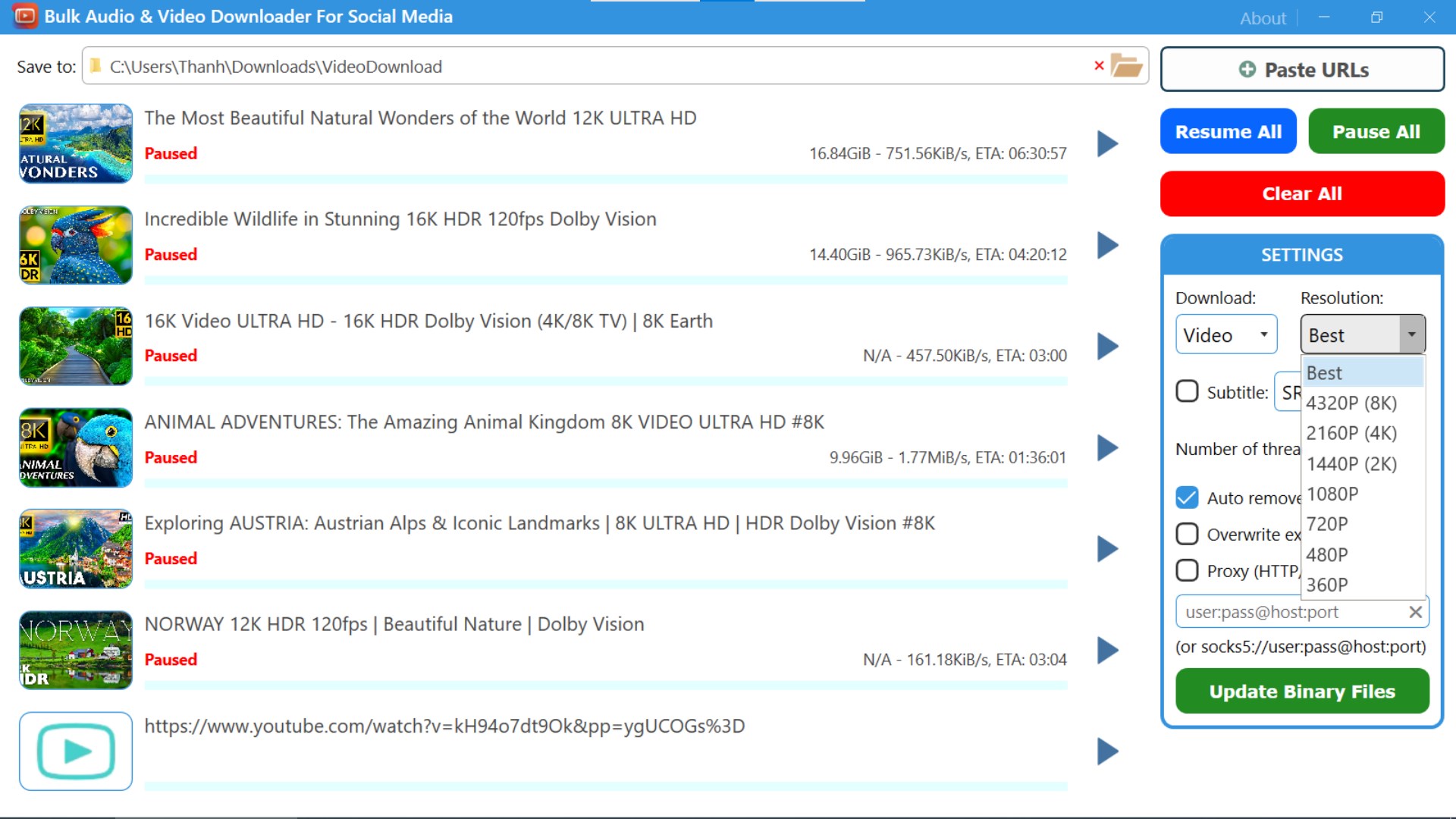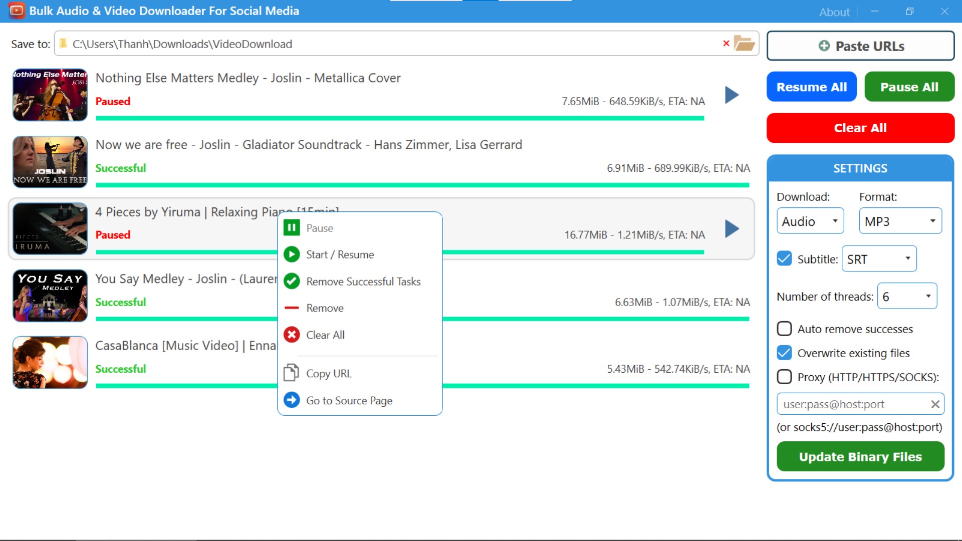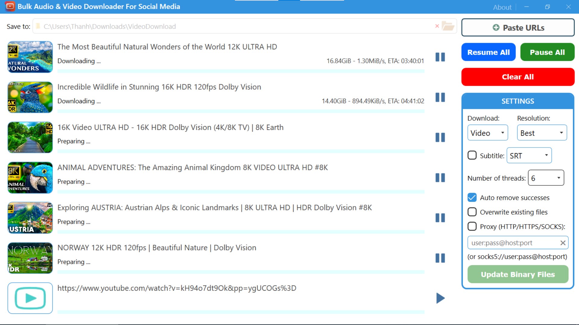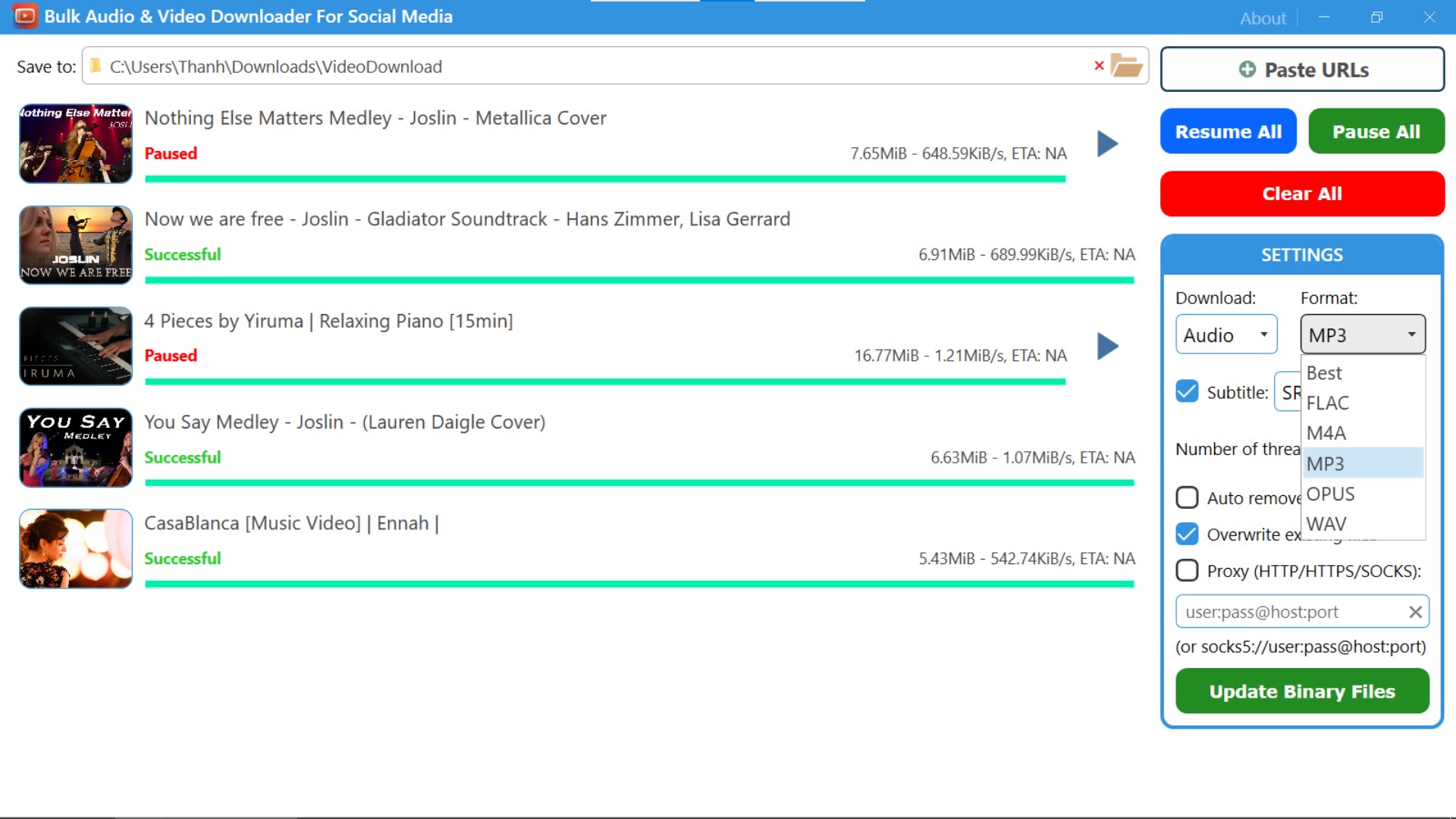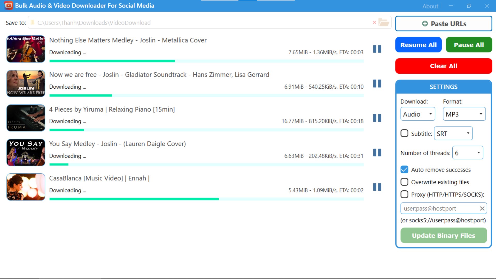 Downloading files one by one is tedious. A bulk downloader automates the process, you just paste multiple video/audio urls at once and download them simultaneously.