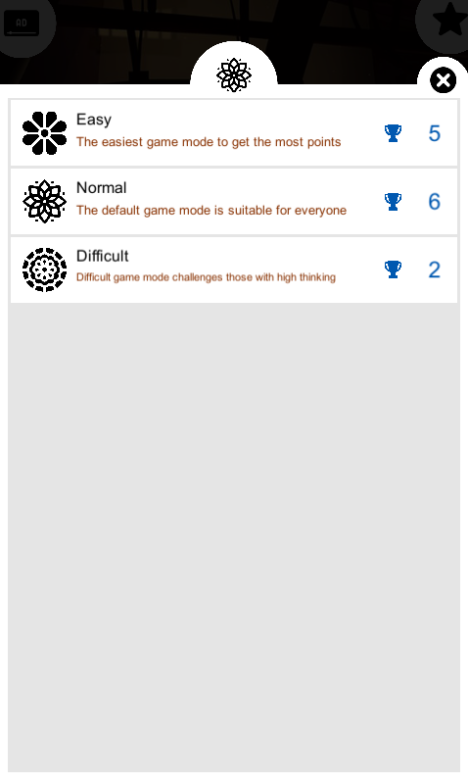 There are three types that are randomly displayed with different colors and difficulty levels, easy, normal according to each scoreboard.