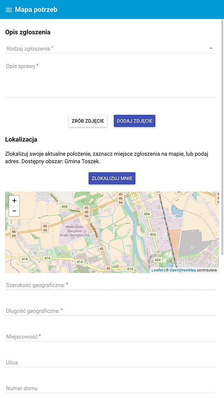 Mapa potrzeb – zgłaszanie problemów