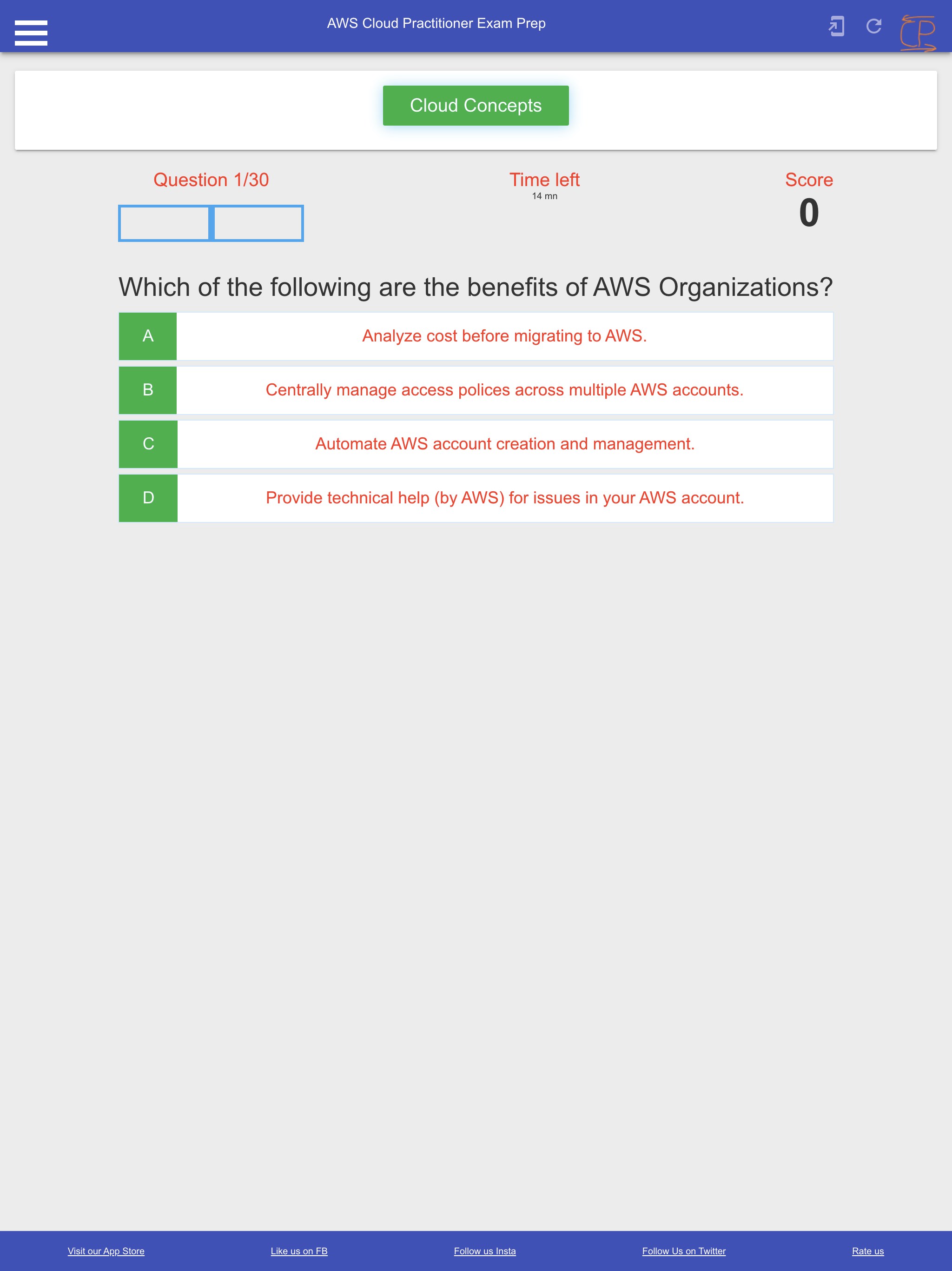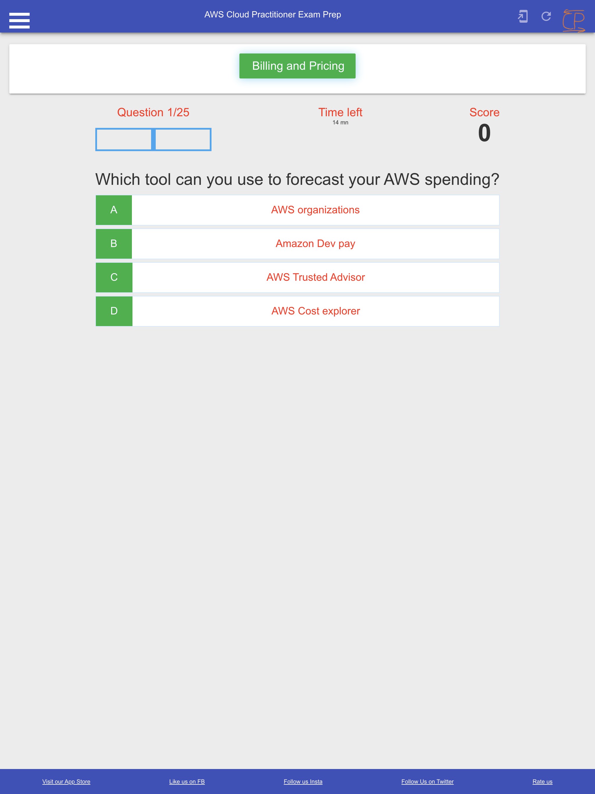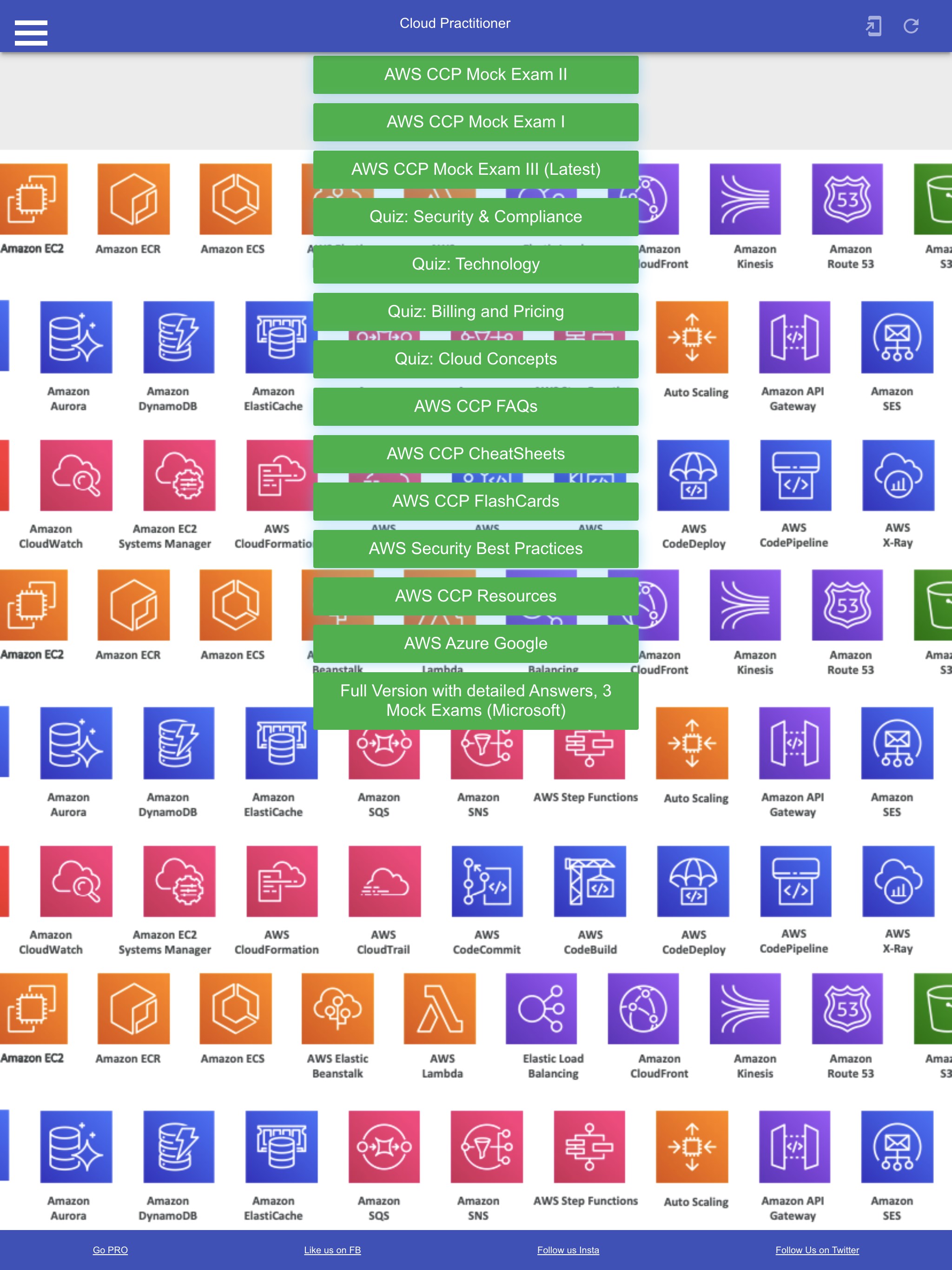 This AWS CCP Prep App helps you prepare and train for the AWS Certified Cloud Practitioner Exam with mock exams and various Q&A updated frequently.
