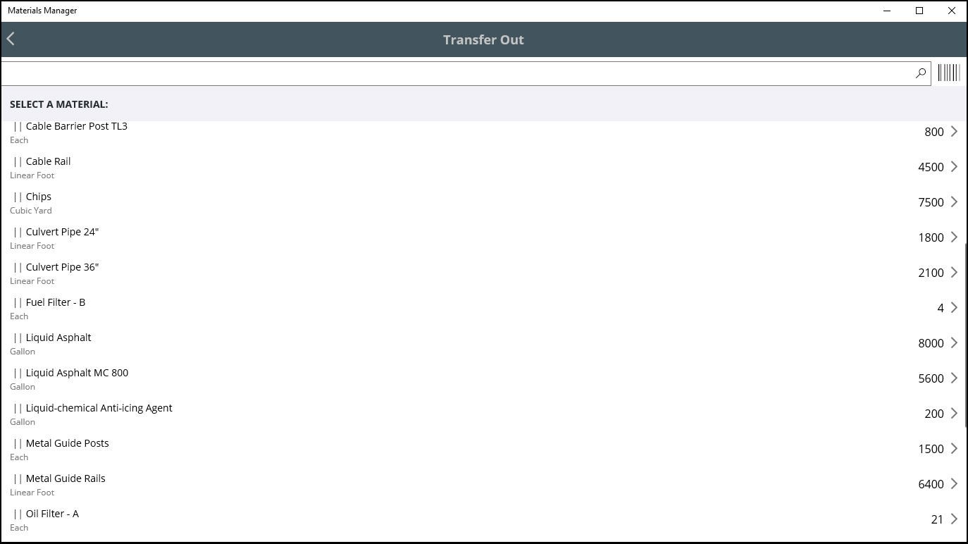AgileAssets Materials Manager makes it easier for crews to manage material and parts inventory by enabling them to scan inventory bar codes, update quantities and record inventory transfers and purchases with their phone or tablet mobile devices from warehouses and work sites.
