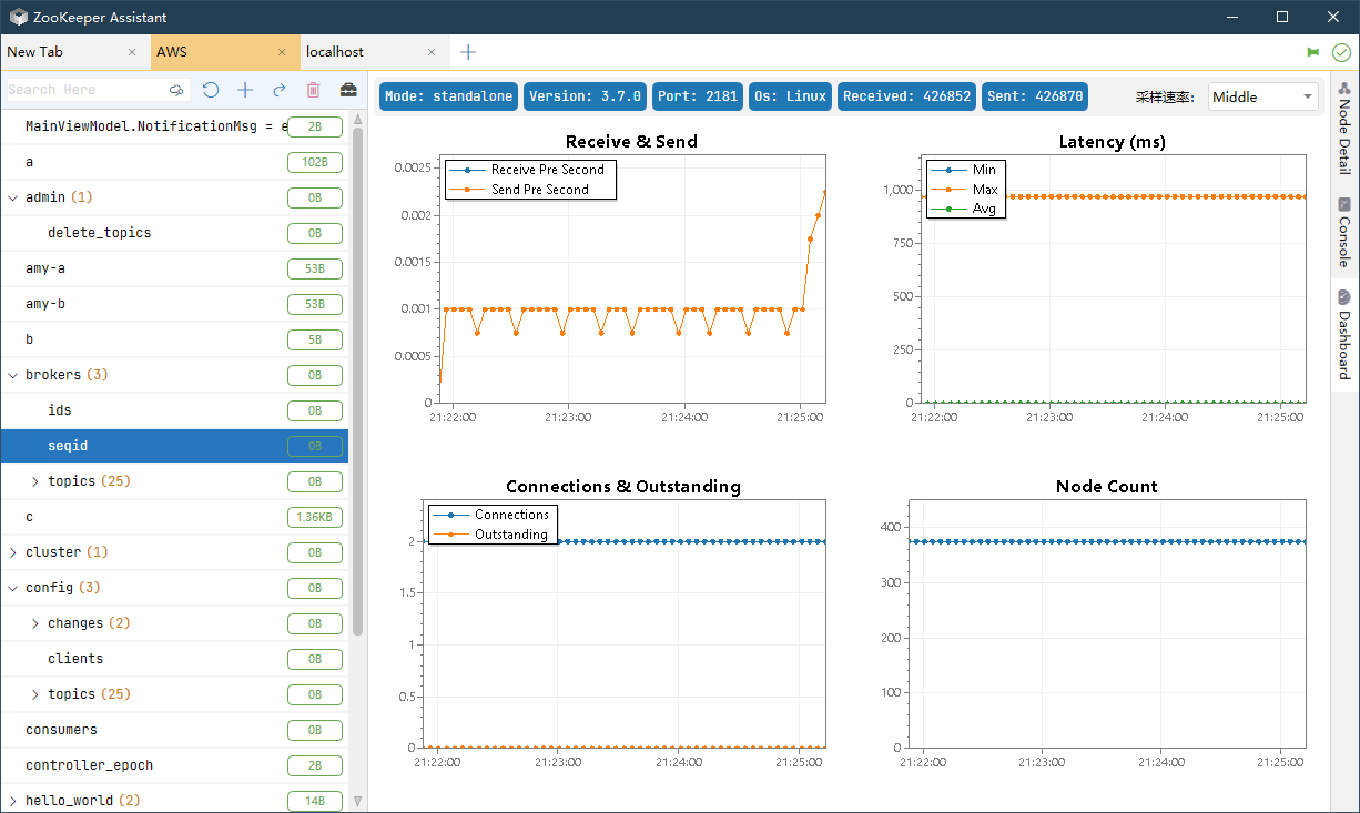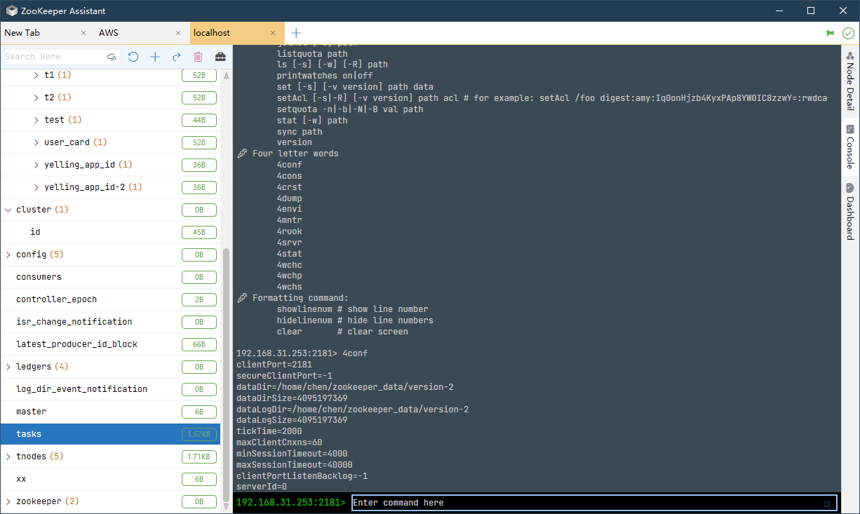 - Command Line: Supports rich command line operations, including commands provided by zkCli.sh and four-character commands, all in one software.
