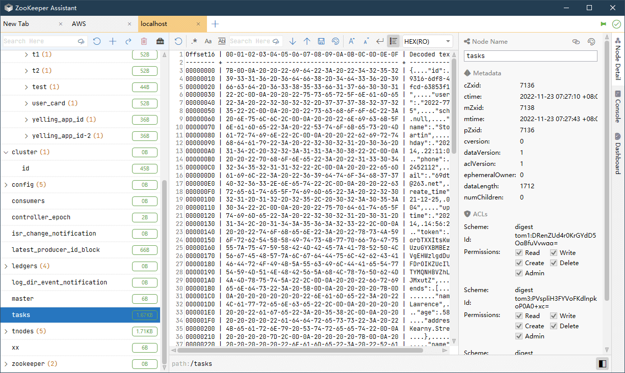 - Data Formatting: ZooKeeper Assistant can recognizes and formats different data automatically, including Text, JSON, XML, HEX, MessagePack.